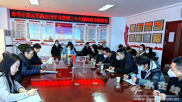 近日,市政府金融辦組織全市小額貸款公司、市域外小額貸款公司分支機(jī)構(gòu)、典當(dāng)行舉行學(xué)習(xí)宣傳貫徹黨的二十大精神宣講報(bào)告會(huì),辦黨組成員、副主任張小明作了宣講報(bào)告。報(bào)告圍繞充分認(rèn)識(shí)黨的二十大重大意義、深刻感悟過(guò)去5年重大成就和新時(shí)代10年偉大變革、潛心領(lǐng)悟開(kāi)辟馬克思主義中國(guó)化時(shí)代化的新境界、深刻領(lǐng)會(huì)新時(shí)代新征程中國(guó)共產(chǎn)黨的使命任務(wù)、準(zhǔn)確把握全面建設(shè)社會(huì)主義現(xiàn)代化國(guó)家的部署要求、深入貫徹堅(jiān)持黨的全面領(lǐng)導(dǎo)和全面從嚴(yán)治黨部署要求、認(rèn)真貫徹落實(shí)黨的二十大精神和決策部署等七個(gè)方面進(jìn)行了宣講,并就小額貸款公司、典當(dāng)行進(jìn)一步學(xué)習(xí)貫徹黨的二十大精神提出要求,要求小額貸款公司、典當(dāng)行要切實(shí)立足自身實(shí)際,強(qiáng)化服務(wù)觀念,增強(qiáng)自我發(fā)展能力,自覺(jué)服從全市發(fā)展大局,為全市經(jīng)濟(jì)社會(huì)發(fā)展特別是有效解決中小微企業(yè)、“三農(nóng)”融資需求作出應(yīng)有的貢獻(xiàn)。