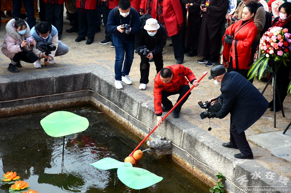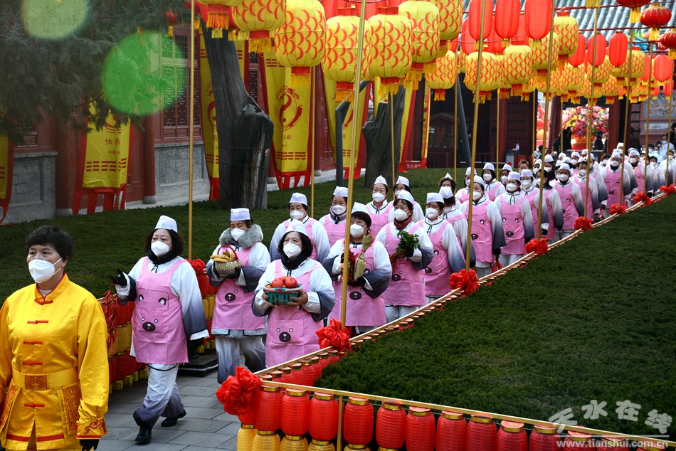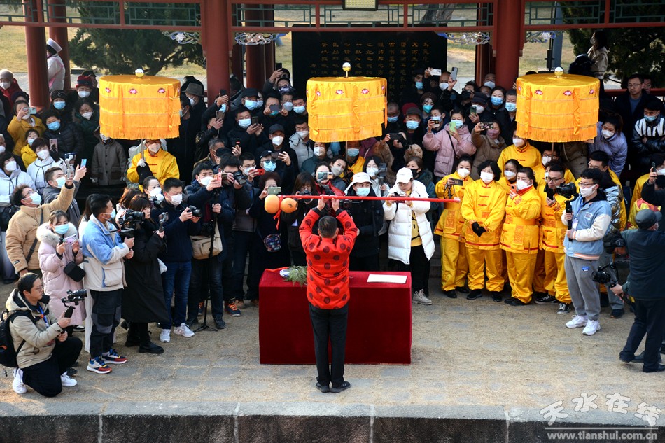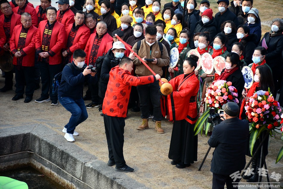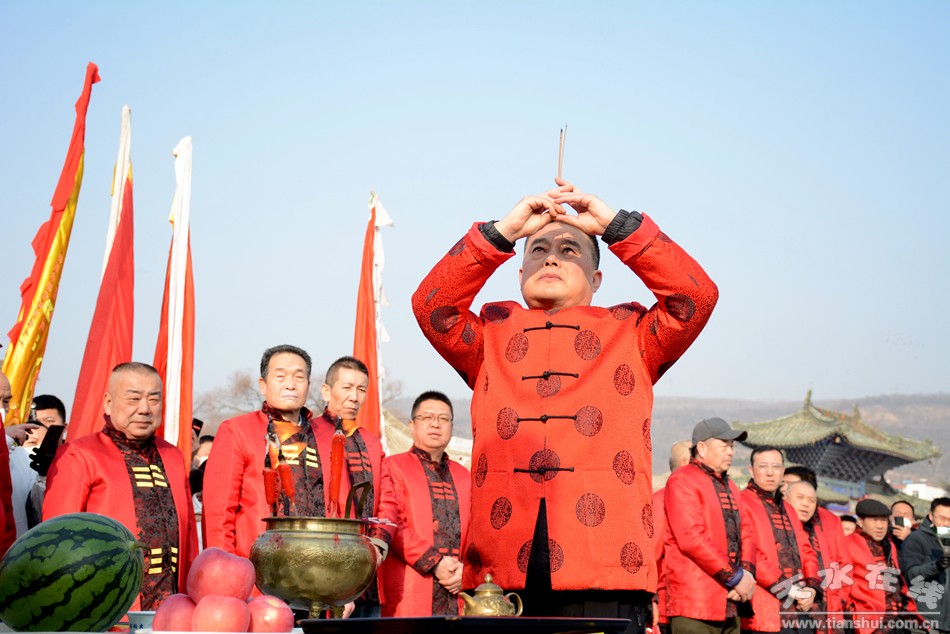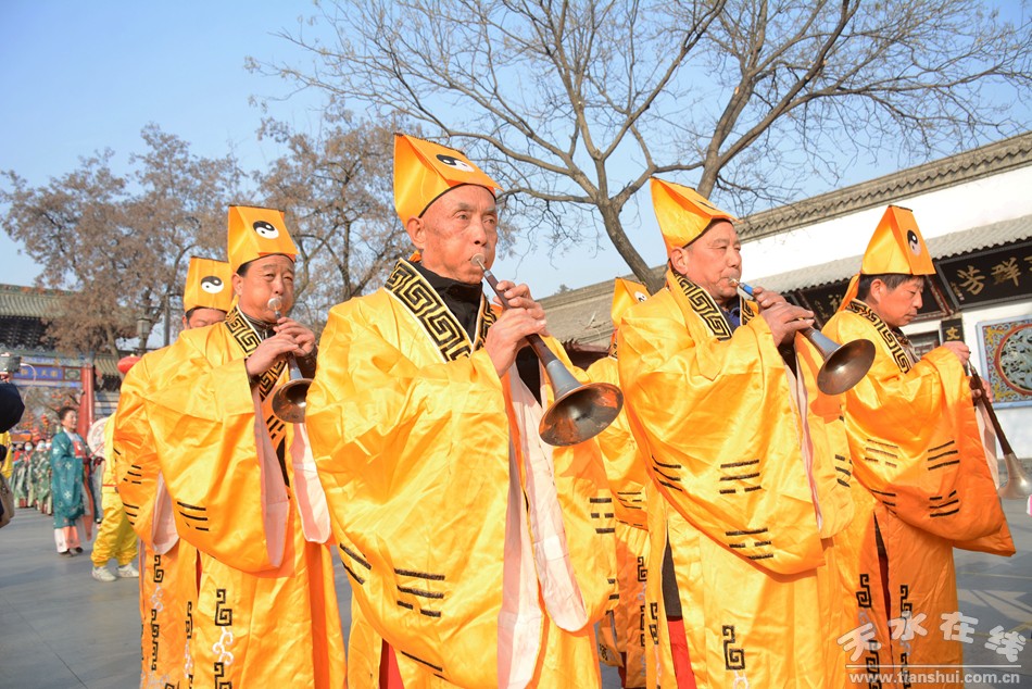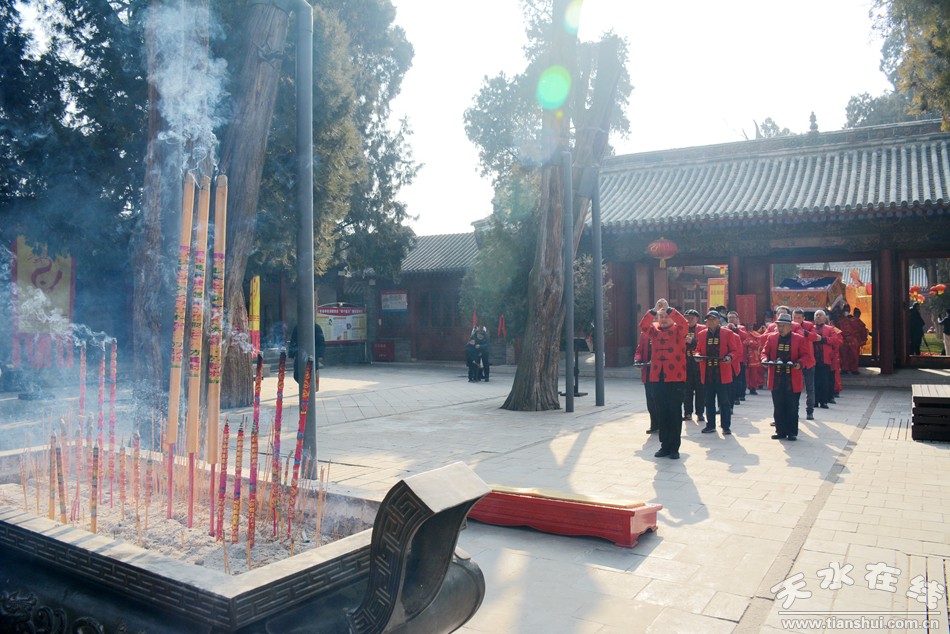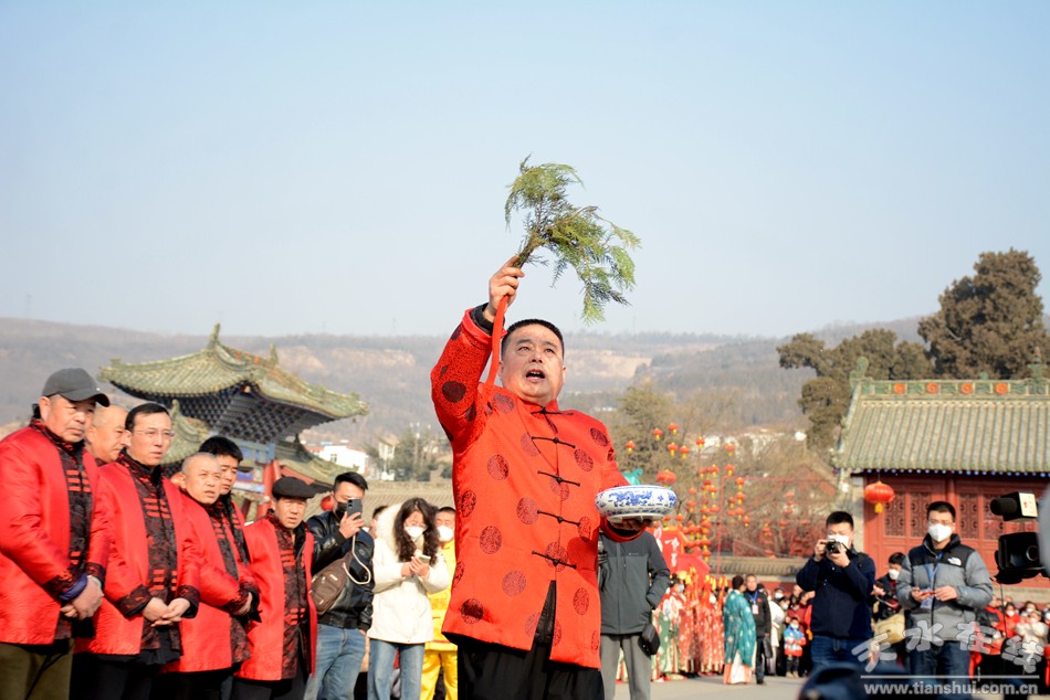 8:30 儀仗隊集合完畢進入伏羲廟,在泮池舉行取圣水儀式,將迎取的圣水灑向大地,祈福中華大地風調(diào)雨順、國泰民安。