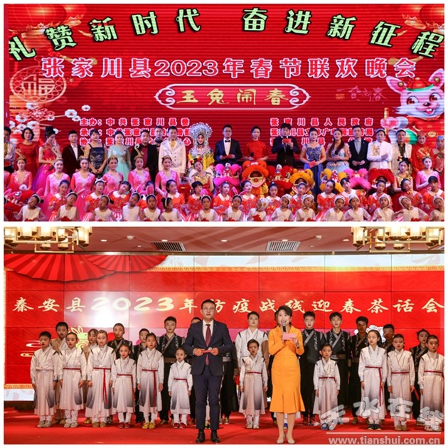 深入貫徹落實黨的二十大精神,弘揚中華優(yōu)秀傳統(tǒng)文化,天水市2023年春節(jié)聯(lián)歡晚會、秦安縣迎新春慰問抗疫戰(zhàn)線文藝演出、“軒轅故里涌春潮·康養(yǎng)福地展新姿”清水縣春節(jié)綜藝晚會、張家川縣2023年春節(jié)聯(lián)歡晚會等專題晚會在各大劇場陸續(xù)上演。歡快喜慶的歌舞點燃晚會現(xiàn)場氣氛,相聲、小品、戲曲等優(yōu)秀傳統(tǒng)節(jié)目輪番上演,原汁原味的地方春晚展現(xiàn)了新征程天水人民奮進的新姿態(tài),營造了喜慶歡樂、祥和文明、安全和暢的節(jié)日氛圍。