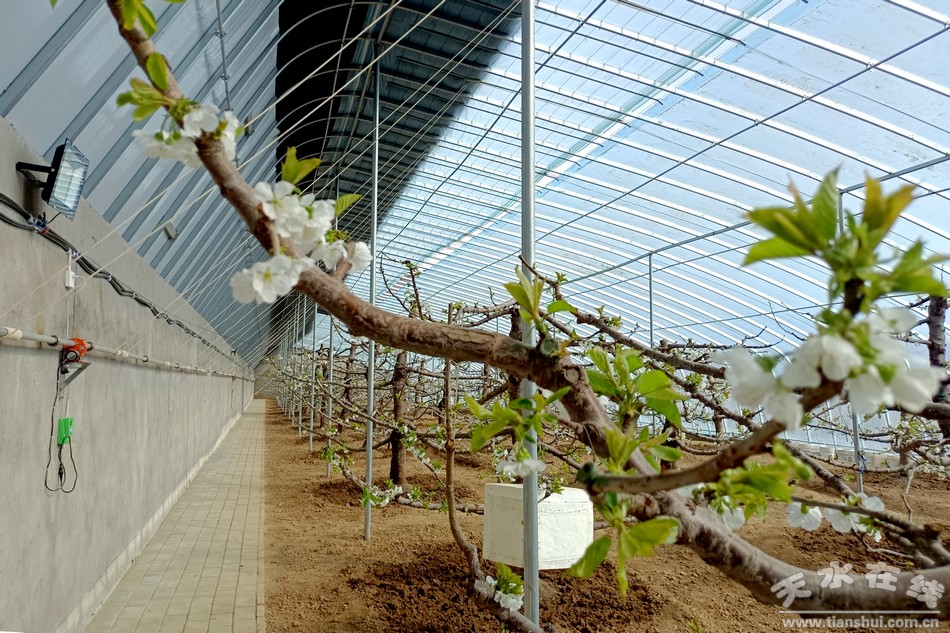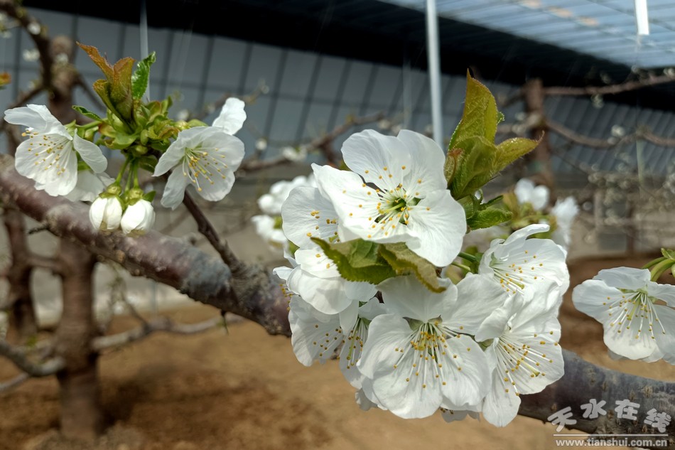 2月23日,位于天水市秦州區(qū)玉泉鎮(zhèn)煙鋪村大棚果園里的櫻桃樹進(jìn)入盛花期,簇簇雪白的櫻桃花開滿枝頭,一派春意盎然的景象。據(jù)悉,大棚櫻桃預(yù)計(jì)4月份采摘上市,比露天櫻桃提前近一個(gè)月。由于科學(xué)管護(hù),櫻桃果實(shí)個(gè)大飽滿,口感甘甜,深受消費(fèi)者喜愛。