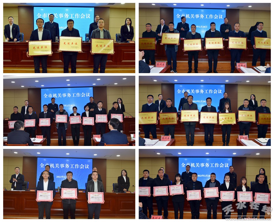 會議全面貫徹黨的二十大精神,重溫學習了習近平總書記關于機關事務工作的重要指示精神,通報表彰了2022年度先進單位和先進個人。各縣區(qū)機關事務部門主要負責人、市機關事務服務中心領導班子成員和機關干部職工、先進代表、市級公務車隊在家駕駛員、職工食堂、物管辦職工,共計80余人參加了會議。