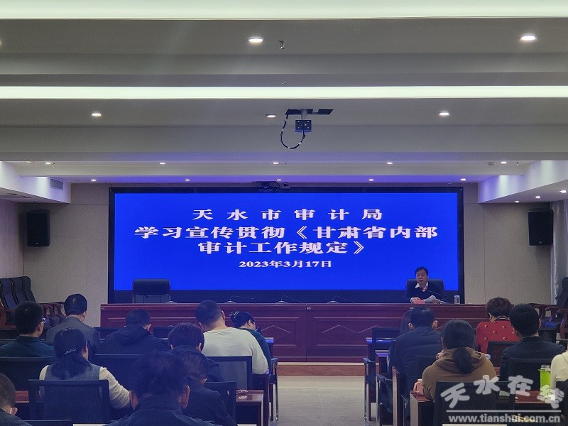 為了加強(qiáng)內(nèi)部審計(jì)工作,建立健全內(nèi)部審計(jì)制度,提升內(nèi)部審計(jì)工作質(zhì)量,充分發(fā)揮內(nèi)部審計(jì)作用,3月17日,按照省審計(jì)廳統(tǒng)一部署和市審計(jì)局黨組具體安排,天水市審計(jì)局二級(jí)調(diào)研員馬群同志在“審計(jì)大講堂”系列講座第四講中,結(jié)合《甘肅省審計(jì)廳關(guān)于學(xué)習(xí)宣傳貫徹<甘肅省內(nèi)部審計(jì)工作規(guī)定>的通知》(甘省發(fā)[2023]18號(hào))精神,專題解讀、宣講《甘肅省內(nèi)部審計(jì)工作規(guī)定》。市審計(jì)局全體干部職工參加了專題講座。