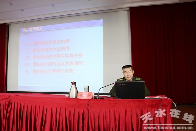 為深入學(xué)習(xí)貫徹習(xí)近平總書(shū)記關(guān)于國(guó)防動(dòng)員的重要指示批示精神,全面貫徹落實(shí)中共甘肅省委 甘肅省人民政府 甘肅省軍區(qū)《關(guān)于加強(qiáng)和改進(jìn)新時(shí)代全民國(guó)防教育工作實(shí)施意見(jiàn)》(甘發(fā)〔2023〕4號(hào))精神和國(guó)防動(dòng)員(人防)宣傳教育“進(jìn)機(jī)關(guān)”相關(guān)要求,進(jìn)一步增強(qiáng)各級(jí)干部的國(guó)防觀念和國(guó)防意識(shí),4月6日下午,天水市邀請(qǐng)甘肅省軍區(qū)動(dòng)員局薛志明上校為市委黨校春季主體班次一期全體學(xué)員進(jìn)行“國(guó)防動(dòng)員介紹”專(zhuān)題講座。市委黨校副校長(zhǎng)許有平主持講座。