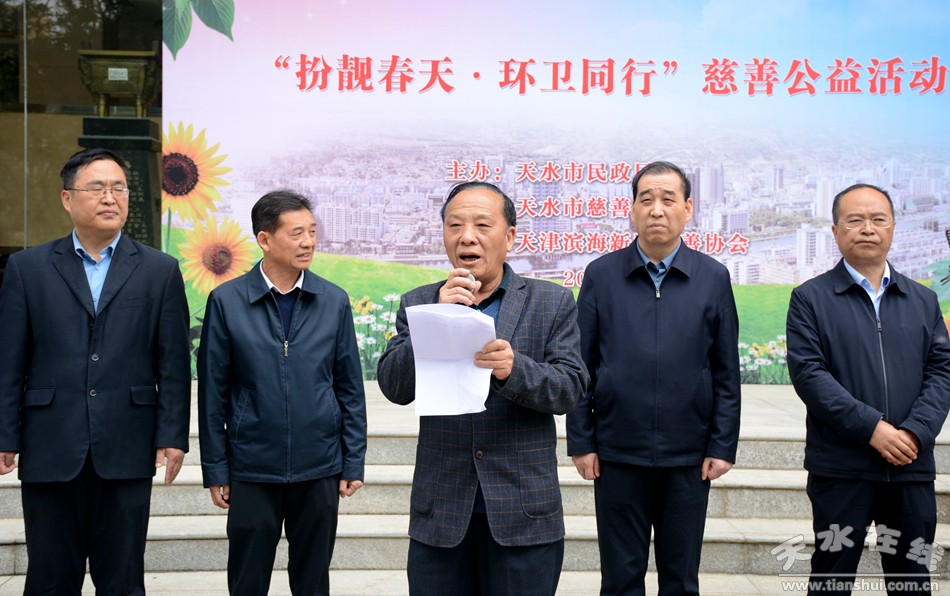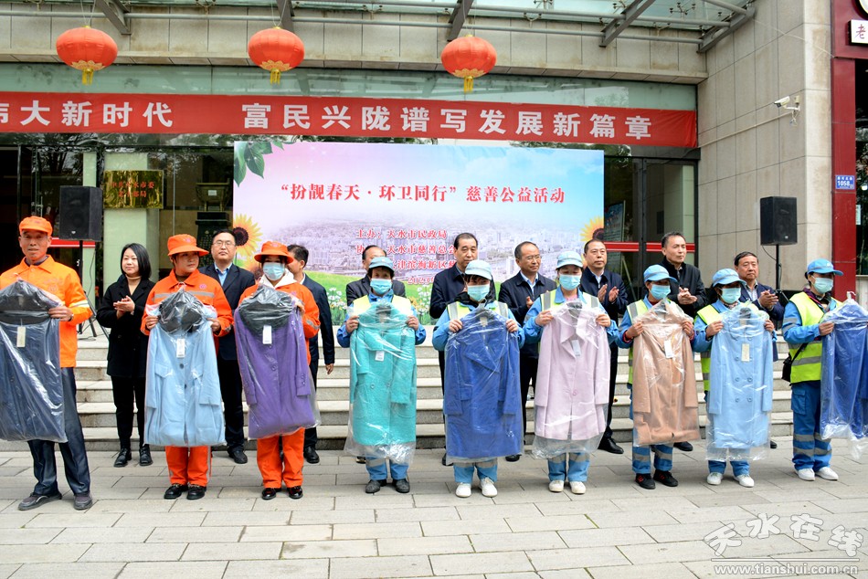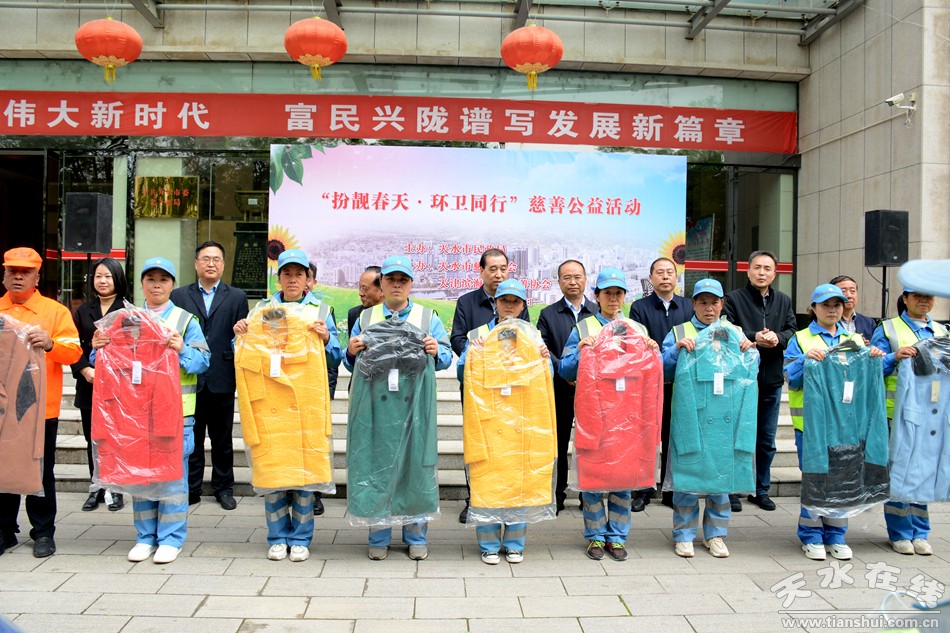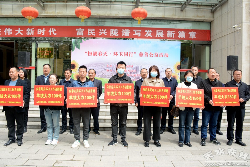 環(huán)境衛(wèi)生是城市的窗口和形象,環(huán)衛(wèi)工人是“城市 的美容師”,是城市環(huán)境衛(wèi)生的守護(hù)者。舉辦“扮靚春天 環(huán)衛(wèi)同行”慈善公益活動,其目的是謳歌廣大環(huán)衛(wèi)工人的辛勤勞動,弘揚勞動精神,樹立美好形象,激發(fā)全市人民投身勞動的熱情,裝扮美麗天水,鞏固創(chuàng)衛(wèi)創(chuàng)城成果。市慈善總會會長王欽錫在致辭中希望通過這次活動能夠帶動更多的愛心企業(yè)、愛心人士來關(guān)心關(guān)注環(huán)衛(wèi)和慈善事業(yè),支持關(guān)愛環(huán)衛(wèi)工人,使我們的環(huán)衛(wèi)工人更有尊嚴(yán)地工作,快樂幸福地生活,共同把我們的城市裝扮的更加整潔、舒適和靚麗。