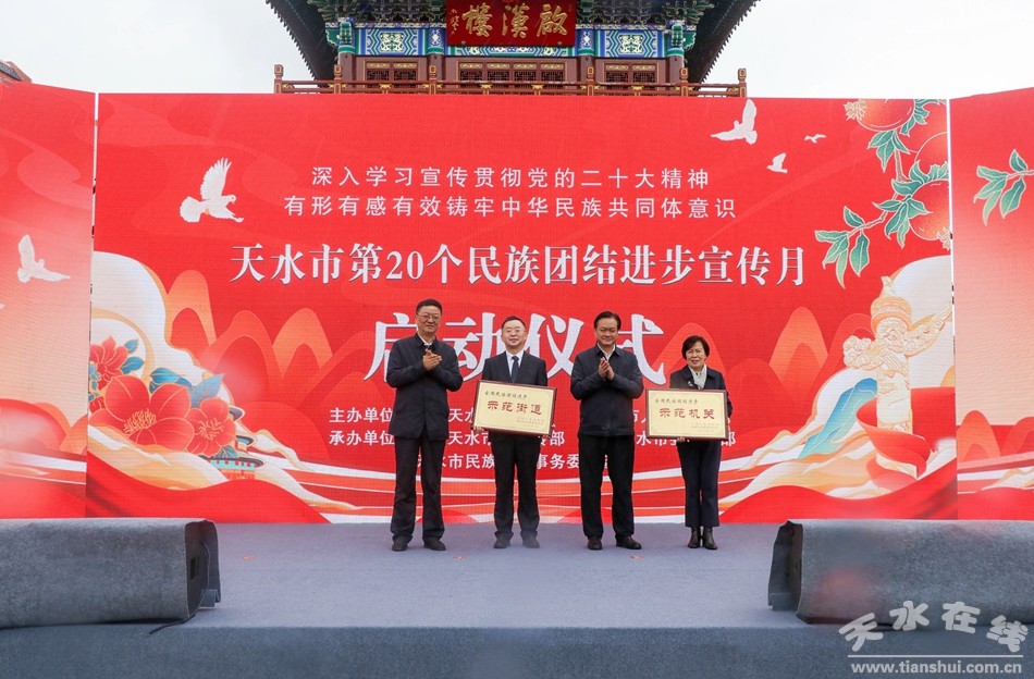 啟動儀式上,宣讀了國家民委《關(guān)于命名第十批全國民族團結(jié)進步示范區(qū)示范單位的決定》,省委宣傳部、省委統(tǒng)戰(zhàn)部、省民委《關(guān)于命名第八批全省民族團結(jié)進步示范區(qū)示范單位的決定》,并為榮獲“第十批全國民族團結(jié)進步示范單位”的市教育局、秦州區(qū)中城街道授牌;顒蝇F(xiàn)場表演了《同心共筑中國夢》《中華一家親》等歌舞,展現(xiàn)了各族群眾團結(jié)奮斗、繁榮發(fā)展的和美景象。