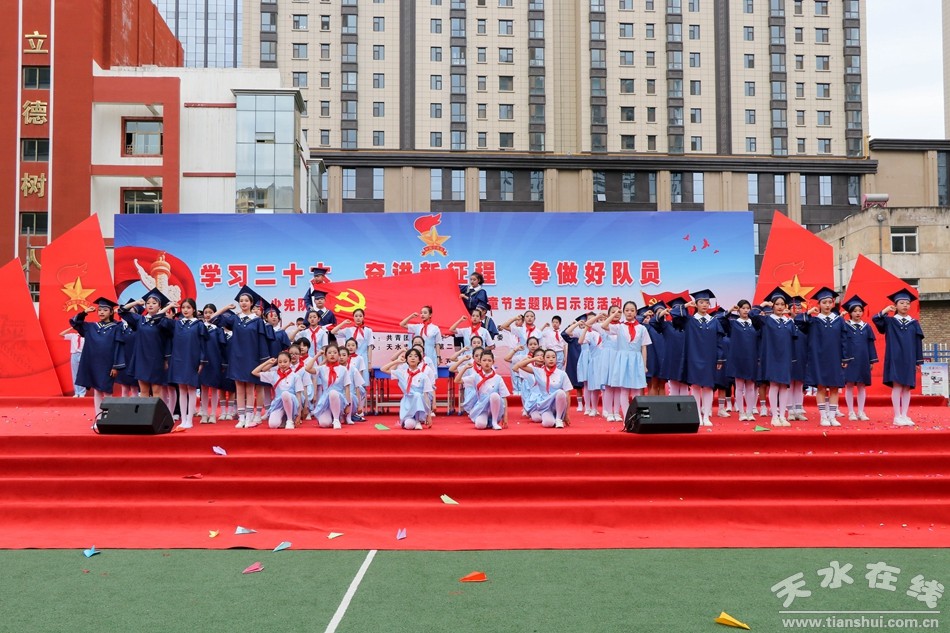 活動中,市建二小學(xué)為一年級523名學(xué)生舉行了入隊儀式,表彰了2022年度全國優(yōu)秀少先隊員、全國優(yōu)秀少先隊輔導(dǎo)員、全國優(yōu)秀少先隊集體及2022—2023年度天水市紅領(lǐng)巾獎?wù)氯钦录w和個人,觀看了少先隊風(fēng)采展示。