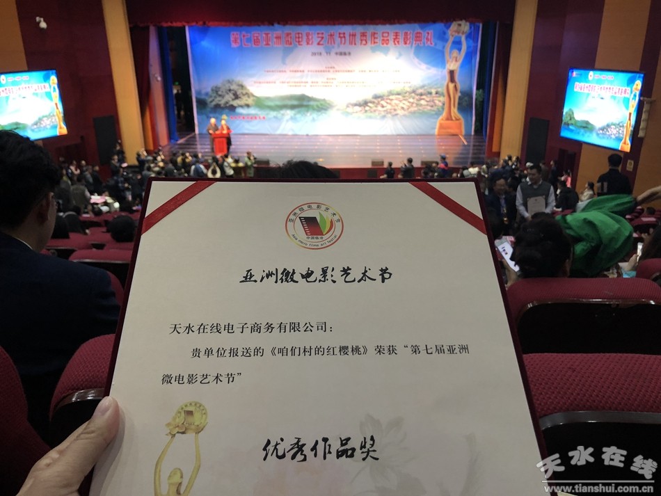 ▲2019年11月7日,天水在線微電影《咱們村的紅櫻桃》榮獲亞洲微電影藝術(shù)節(jié)優(yōu)秀作品獎。