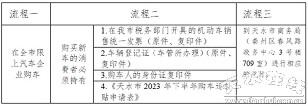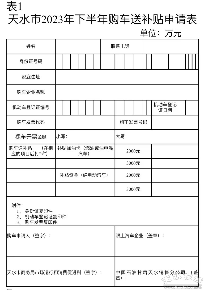 兌付時間從2023年6月25日起到市商務局市場運行和消費促進科進行兌付,購新車的消費者持《天水市2023年下半年購車送補貼申請表》及表中附件資料。