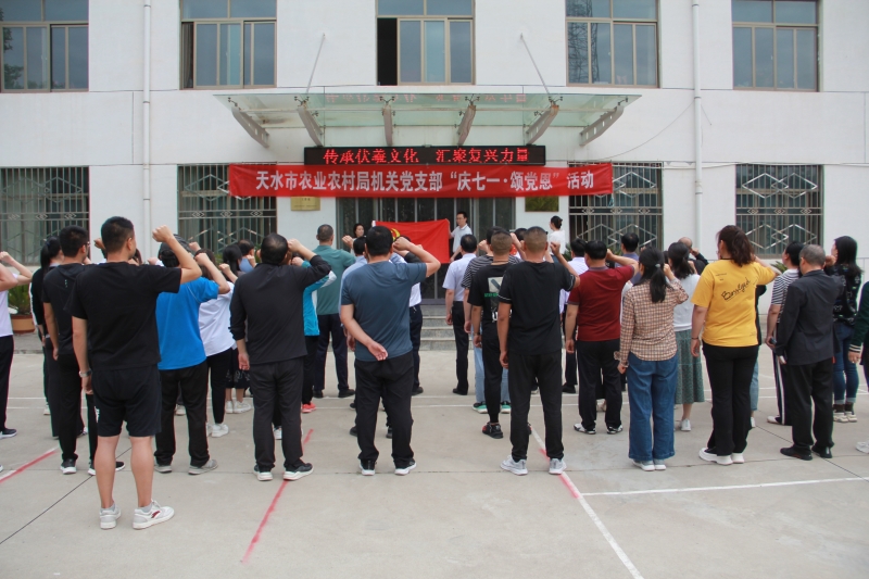 時(shí)值夏至,瓜果飄香。上午9:30,市農(nóng)業(yè)農(nóng)村局機(jī)關(guān)第一、二黨支部全體黨員面向黨旗,列隊(duì)站立,莊嚴(yán)地舉起右拳,在領(lǐng)誓人帶領(lǐng)下重溫了入黨誓詞。隨后,在市果樹(shù)研究所機(jī)關(guān)黨支部、研究室黨支部有關(guān)負(fù)責(zé)同志帶領(lǐng)下,認(rèn)真參觀了市果樹(shù)研究所蘋(píng)果種質(zhì)資源庫(kù),詳細(xì)聽(tīng)取市果樹(shù)研究所有關(guān)專家的精彩講解,全面了解天水豐富的蘋(píng)果種質(zhì)資源,開(kāi)闊了視野,豐富了專業(yè)技術(shù)知識(shí),見(jiàn)證了市果樹(shù)研究所發(fā)展成就。11時(shí)開(kāi)始,局機(jī)關(guān)參加活動(dòng)人員開(kāi)展了跳繩和男子、女子乒乓球比賽,分別評(píng)出了冠、亞、季軍。最后,市農(nóng)業(yè)農(nóng)村局機(jī)關(guān)聯(lián)隊(duì)與市果樹(shù)研究所聯(lián)隊(duì)進(jìn)行了籃球、拔河友誼比賽,進(jìn)一步加強(qiáng)了黨員干部交流,加深了友誼,增進(jìn)了感情,賽出了風(fēng)格、賽出了水平。