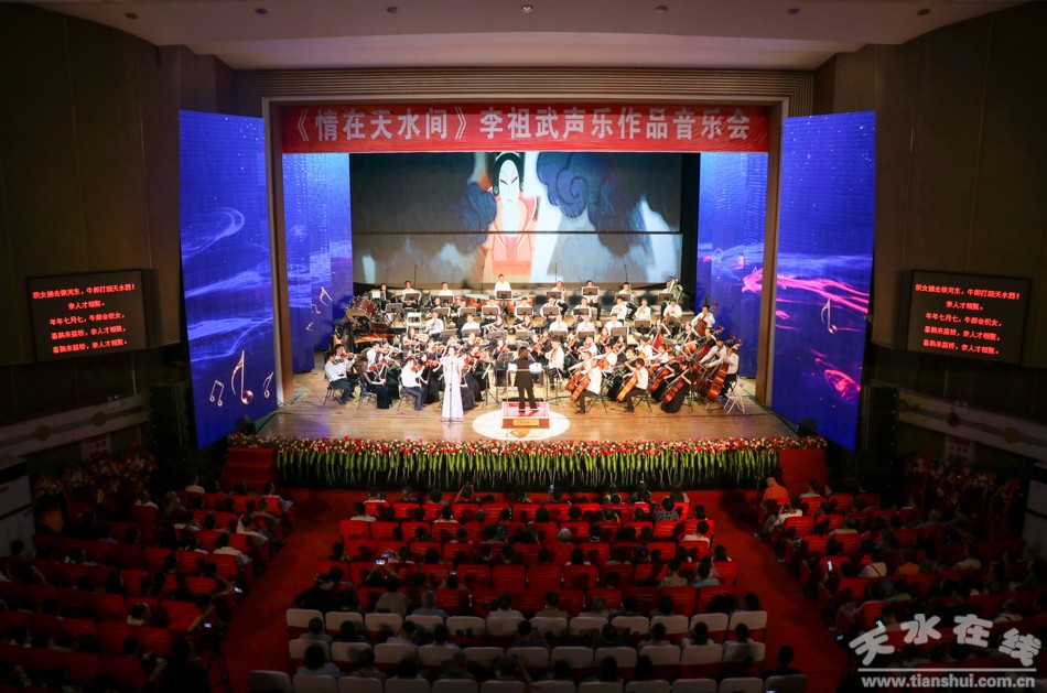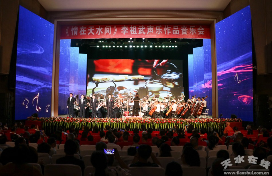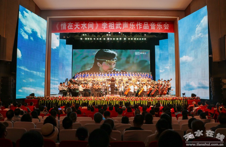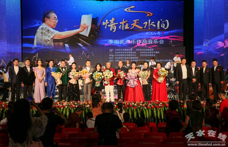 7月15日晚,情在天水間~李祖武聲樂(lè)作品音樂(lè)會(huì)在秦州大劇院激情上演。本次活動(dòng)由天水市委宣傳部、天水市文化和旅游局、天水市文學(xué)藝術(shù)界聯(lián)合會(huì)、天水市委老干局聯(lián)合主辦,天水市歌舞藝術(shù)研究中心、天水市音樂(lè)家協(xié)會(huì)、天水師范學(xué)院音樂(lè)舞蹈學(xué)院聯(lián)合承辦。