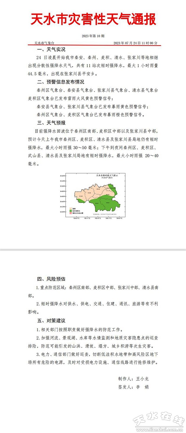 (來(lái)源:天水市氣象臺(tái) 轉(zhuǎn)載:康翠霞)