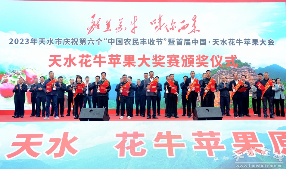 市委書記馮文戈宣布開幕;國家蘋果產(chǎn)業(yè)技術(shù)體系首席科學(xué)家馬鋒旺宣布2023年天水花牛蘋果大獎賽評選結(jié)果;市委副書記、市長王國先為天水籍在外知名人士、支持幫助天水果業(yè)發(fā)展的知名人士和“花牛王”愛心拍賣獲勝者贈送花牛蘋果。