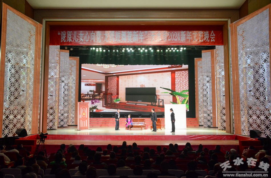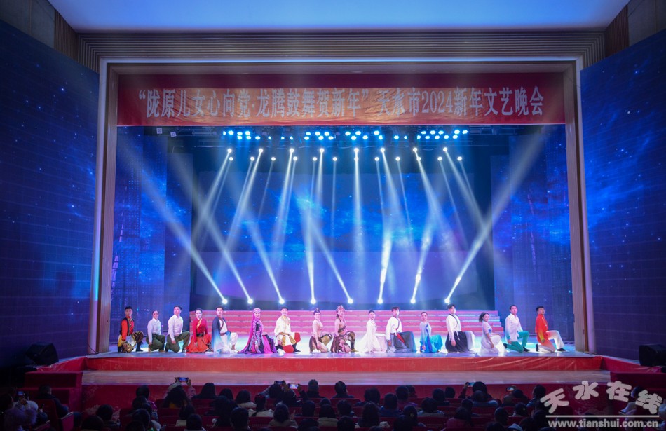 1月10日晚,由天水市文化和旅游局主辦,市歌舞藝術(shù)研究中心、天水藝術(shù)學校承辦的“隴原兒女心向黨·龍騰鼓舞賀新年”天水市2024新年文藝晚會在秦州大劇院精彩上演。豪情滿懷的歌曲,賞心悅目的舞蹈,幽默詼諧的小品,整場晚會沉浸在吉祥喜慶的氛圍中,為現(xiàn)場觀眾獻上了一場視聽盛宴,精彩的節(jié)目贏得大家的陣陣掌聲。