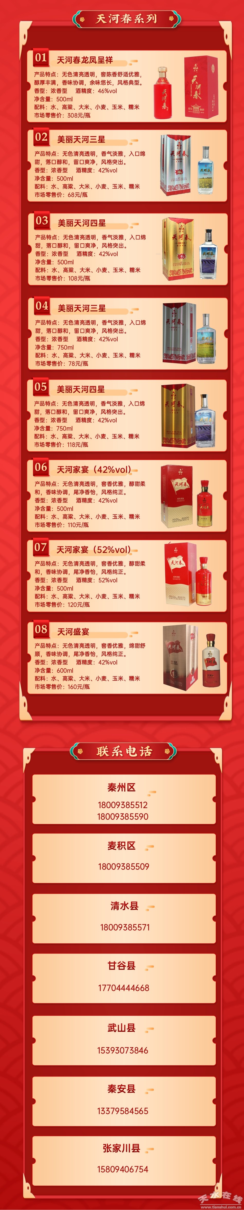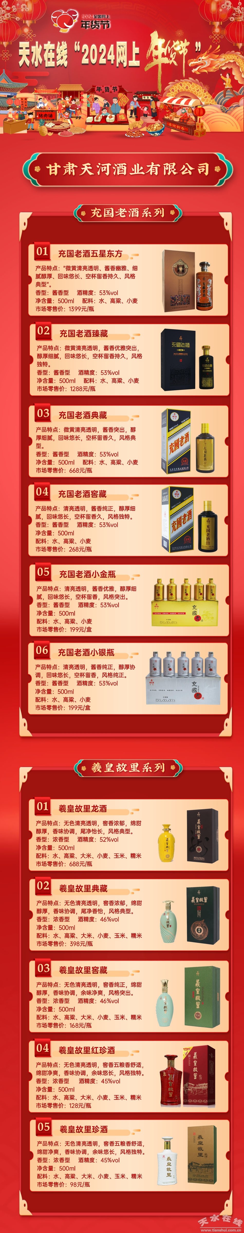 近年來(lái),天河酒業(yè)公司秉承創(chuàng)新、綠色、協(xié)調(diào)、開(kāi)放、共享的發(fā)展理念,緊緊抓住歷史機(jī)遇,投資3.6億元實(shí)施了天河生態(tài)酒業(yè)城技改擴(kuò)建項(xiàng)目,建成年產(chǎn)2000噸原酒發(fā)酵生產(chǎn)線,采用五糧工藝的跑窖法生產(chǎn)。與四川食研院、貴州金醬酒業(yè)集團(tuán)、宜賓吉鑫酒業(yè)等科研單位及名酒優(yōu)勢(shì)企業(yè)合作,形成了穩(wěn)定的技術(shù)協(xié)作關(guān)系,原酒理化指標(biāo)和感官指標(biāo)完全達(dá)到了國(guó)家固態(tài)白酒發(fā)酵優(yōu)質(zhì)標(biāo)準(zhǔn)。先后開(kāi)發(fā)出天河春活力系列、美麗天河星級(jí)系列,天河家宴、天河盛宴系列新產(chǎn)品40多個(gè)品種。2020年,又開(kāi)發(fā)了羲皇故里系列龍酒、典藏、窖藏濃香型三款中高端新產(chǎn)品。注冊(cè)“充國(guó)老酒”新品牌,開(kāi)發(fā)醬香型白酒,填補(bǔ)了當(dāng)?shù)蒯u酒市場(chǎng)銷售空白。形成了高端產(chǎn)品盈利潤(rùn),中低端產(chǎn)品占市場(chǎng)的產(chǎn)品結(jié)構(gòu)體系,在推動(dòng)企業(yè)高質(zhì)量發(fā)展的道路上邁出了堅(jiān)實(shí)的步伐。