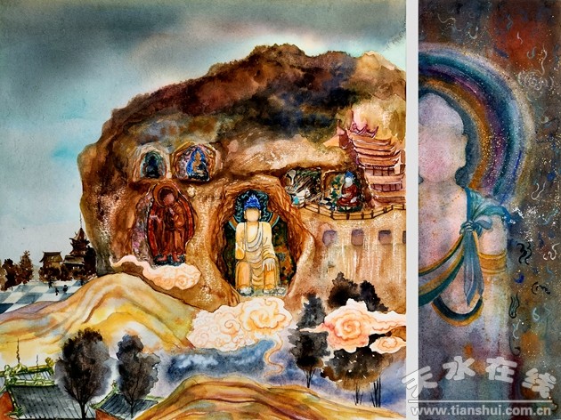 王鵬飛《朝圣敦煌》38.9x54.6cm