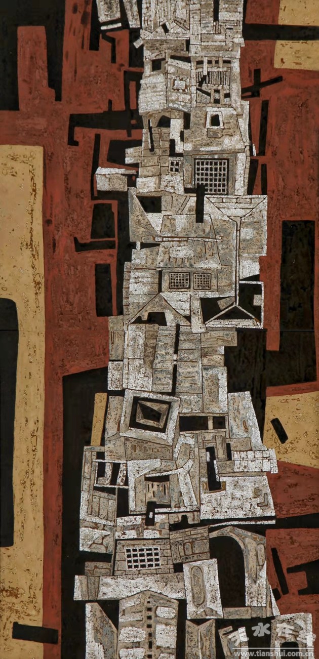 劉洋《邊寨空鳴》漆畫65x105㎝