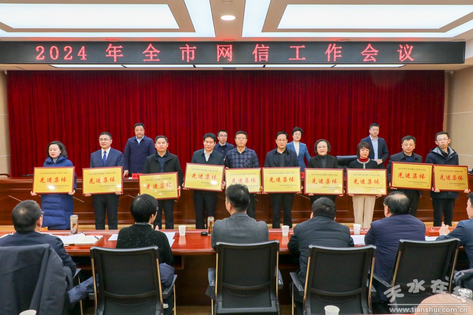 新天水訊【記者 童強(qiáng)】2月3日,2024年全市網(wǎng)信工作會議召開。傳達(dá)學(xué)習(xí)全國、全省網(wǎng)信辦主任會議精神,及市委書記、市委網(wǎng)絡(luò)安全和信息化委員會主任馮文戈同志關(guān)于網(wǎng)信工作的批示,表彰2023年全市網(wǎng)信工作先進(jìn)集體、先進(jìn)個人,總結(jié)2023年全市網(wǎng)信工作,安排部署2024年重點任務(wù)。市委常委、宣傳部部長王文東出席會議并講話,副市長汪小娟主持會議。
