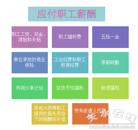 應(yīng)付職工薪酬指企業(yè)為獲得職工提供的服務(wù)或解除勞動關(guān)系而給予的各種形式的報(bào)酬或補(bǔ)償。具體包括下圖所示的11項(xiàng)內(nèi)容。