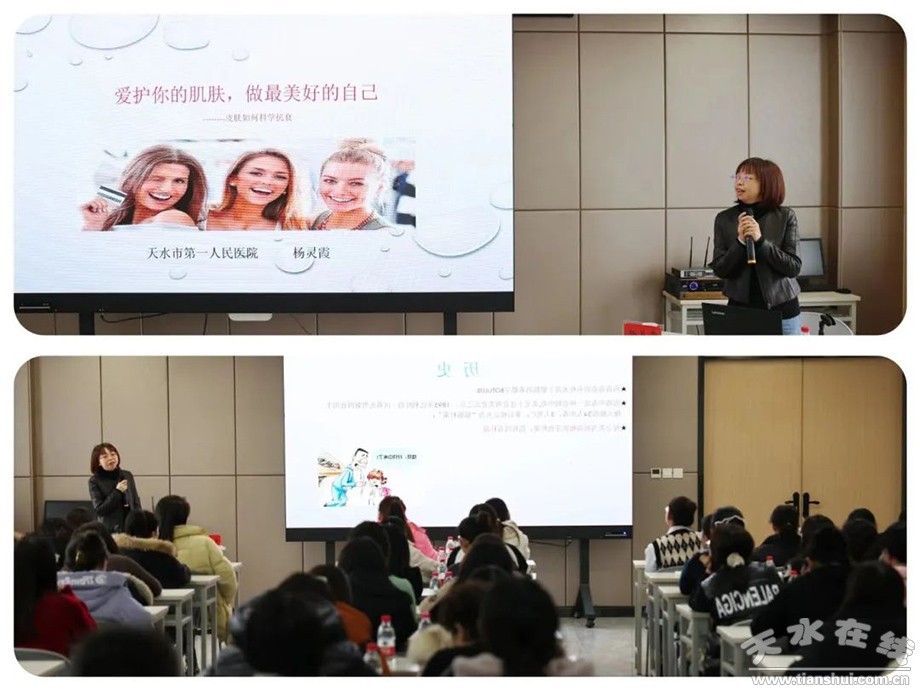 市一院皮膚科聯(lián)合市總工會,為華天集團女職工開展了皮膚健康管理專題講座。楊靈霞副主任以生動形象的語言、直觀易懂的圖片,普及皮膚護理科學知識,引導大家樹立起科學護膚、理性護膚的理念,講座現(xiàn)場座無虛席,女職工們紛紛提問交流,氣氛輕松而熱烈。同時,皮膚科門診為身邊的“她”提供免費 4K 超高清云鏡皮膚檢查,檢測面部色斑、毛孔、炎癥、毛細血管擴張、皮膚敏感程度等,為有皮膚問題或護膚疑慮的女性朋友答疑解惑,讓更多的“她”美出風采、美出自信。