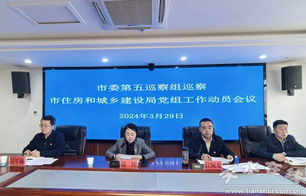 根據(jù)八屆市委第五輪巡察統(tǒng)一部署,2024年3月29日,市委第五巡察組巡察市住房和城鄉(xiāng)建設(shè)局黨組工作動(dòng)員會(huì)召開。會(huì)前,巡察組與市住房和城鄉(xiāng)建設(shè)局黨組主要負(fù)責(zé)人召開進(jìn)駐見面溝通會(huì),通報(bào)有關(guān)情況。會(huì)上,市委第五巡察組組長謝輝作動(dòng)員講話,就做好巡察工作提出要求,市住建局黨組書記、局長任佩光主持會(huì)議并作表態(tài)講話。市委第五巡察組全體成員,市住建局黨組班子成員,機(jī)關(guān)干部職工及局屬各單位班子成員共計(jì)50余人參加會(huì)議。