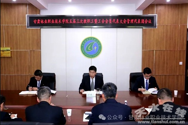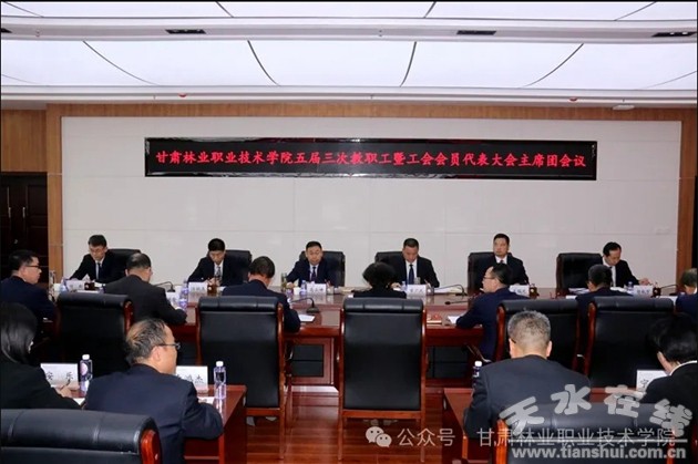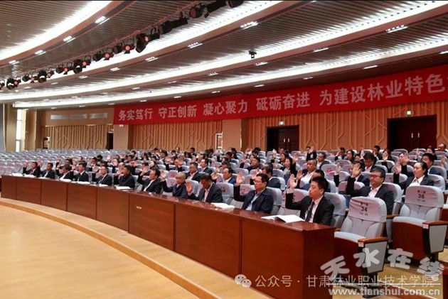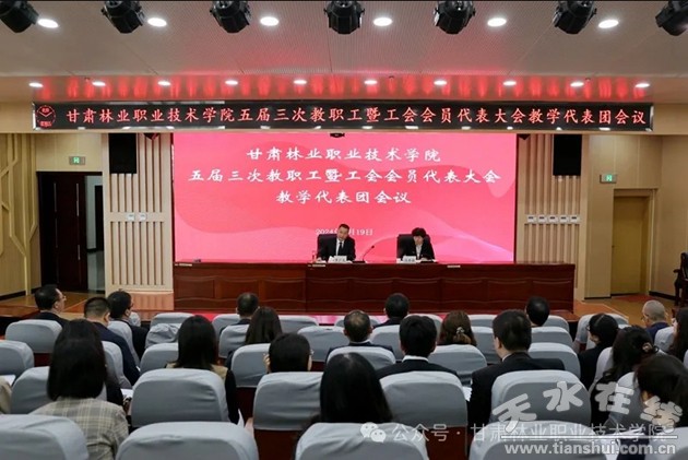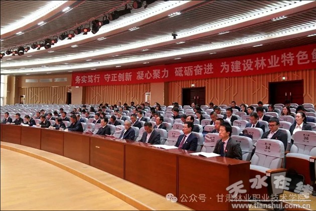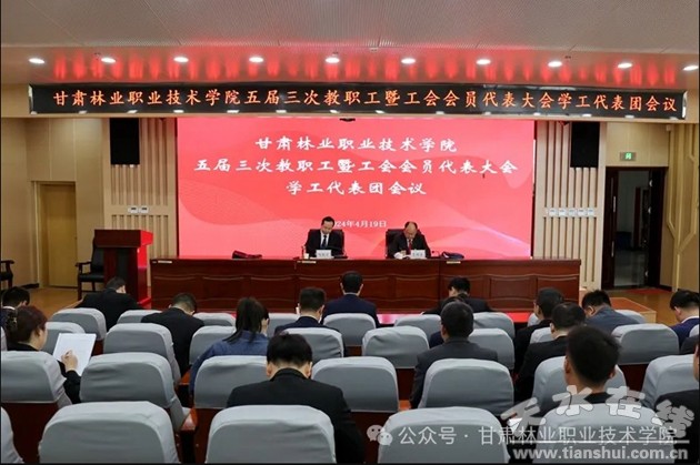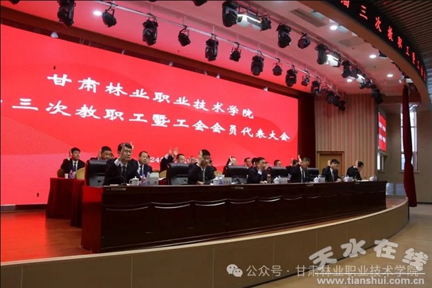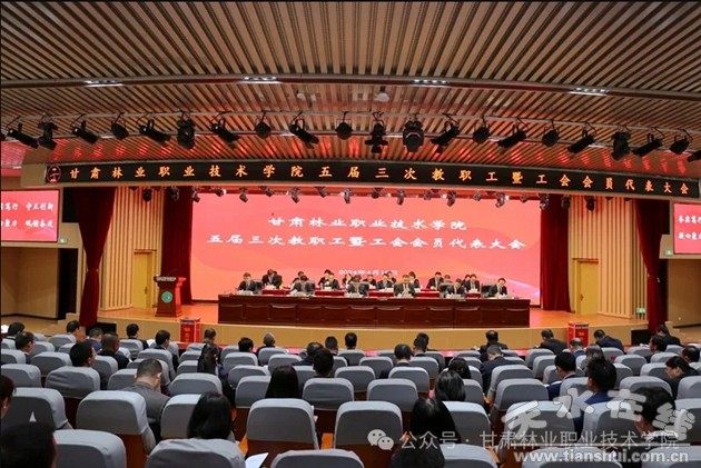 4月19日,甘肅林業(yè)職業(yè)技術(shù)學(xué)院五屆三次教職工暨工會(huì)會(huì)員代表大會(huì)在綜合實(shí)訓(xùn)樓二樓報(bào)告廳隆重召開(kāi),學(xué)院黨委書(shū)記高云峰,黨委副書(shū)記、院長(zhǎng)羅廣元及全體主席團(tuán)成員在主席臺(tái)就坐。正式代表、列席代表、少數(shù)民族代表、民主黨派代表、黨外知識(shí)分子代表共124人出席。
