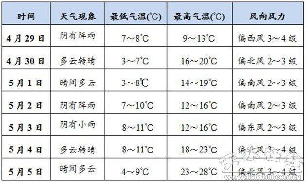“五一”期間天氣預(yù)報