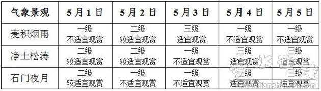 假期氣象景觀指數(shù)預(yù)報: