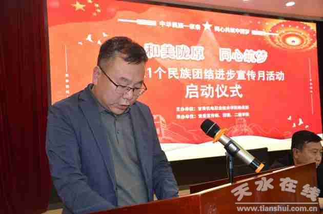 5月8日,我校召開以“和美隴原,同心筑夢”為主題的第21個民族團(tuán)結(jié)進(jìn)步宣傳月活動啟動儀式。在家黨委班子成員出席啟動儀式,黨委各部門主要負(fù)責(zé)人、各二級學(xué)院和技師學(xué)院工作部負(fù)責(zé)人及師生代表共200余人參加。啟動儀式由黨委統(tǒng)戰(zhàn)部部長謝旭斌主持。