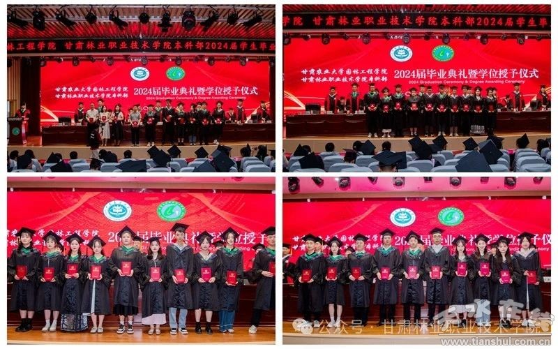 在畢業(yè)典禮上,本科部負(fù)責(zé)人宣讀了《甘肅農(nóng)業(yè)大學(xué)關(guān)于表彰2024屆校級(jí)優(yōu)秀本科畢業(yè)論文(設(shè)計(jì))及優(yōu)秀指導(dǎo)教師的決定》《園林工程學(xué)院關(guān)于表彰2024屆優(yōu)秀畢業(yè)生的決定》,農(nóng)大研究生院負(fù)責(zé)人宣讀了《甘肅農(nóng)業(yè)大學(xué)關(guān)于授予戴建旭等314名同學(xué)學(xué)位的決定》;與會(huì)領(lǐng)導(dǎo)為獲獎(jiǎng)師生代表頒獎(jiǎng),為2024屆本科畢業(yè)生頒發(fā)畢業(yè)證、授予學(xué)位;教師代表阮國(guó)杰、畢業(yè)生代表王斌斌分別作了發(fā)言。