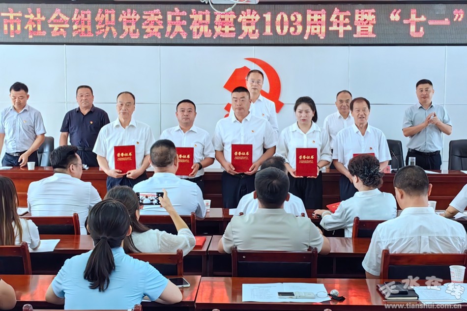 會上,全體黨員重溫入黨誓詞,表彰市屬社會組織5個先進基層黨組織、5名優(yōu)秀黨務(wù)工作者和10名優(yōu)秀共產(chǎn)黨員,3名“兩優(yōu)一先”代表作了交流發(fā)言。