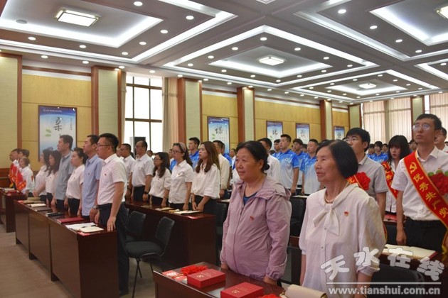 黨委副書記文云領(lǐng)誓,預(yù)備黨員和轉(zhuǎn)正黨員集體宣誓,全體黨員重溫了入黨誓詞。