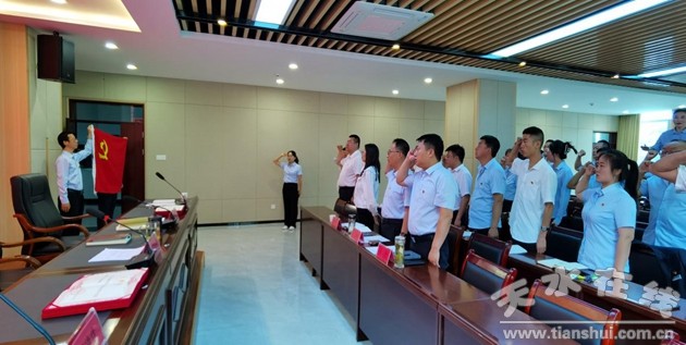 開(kāi)展入黨誓詞宣誓。6月28日上午,全體黨員精神飽滿(mǎn),面向黨旗,高舉右拳,莊嚴(yán)宣誓:“我志愿加入中國(guó)共產(chǎn)黨,擁護(hù)黨的綱領(lǐng),遵守黨的章程,履行黨員義務(wù),執(zhí)行黨的決定,嚴(yán)守黨的紀(jì)律,保守黨的秘密,對(duì)黨忠誠(chéng),積極工作,為共產(chǎn)主義奮斗終身,隨時(shí)準(zhǔn)備為黨和人民犧牲一切,永不叛黨。”在鮮紅的黨旗下,鏗鏘恢宏的誓詞,強(qiáng)烈震撼著在場(chǎng)的每一位黨員,時(shí)刻提醒著黨員干部不忘入黨初心使命,以飽滿(mǎn)的熱情、強(qiáng)烈的責(zé)任心,履職盡責(zé),以實(shí)際行動(dòng)為黨旗增彩,以出色的工作為黨徽增光。