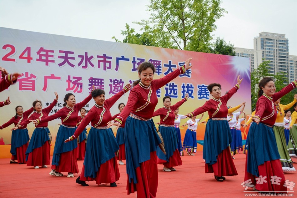 7月10日,2024年天水市廣場舞大賽暨全省廣場舞邀請賽選拔賽在天水市弘文園舉行。來自全市的23支參賽隊表演了富有民族特色、地域風(fēng)情和歌頌主旋律的廣場舞節(jié)目。