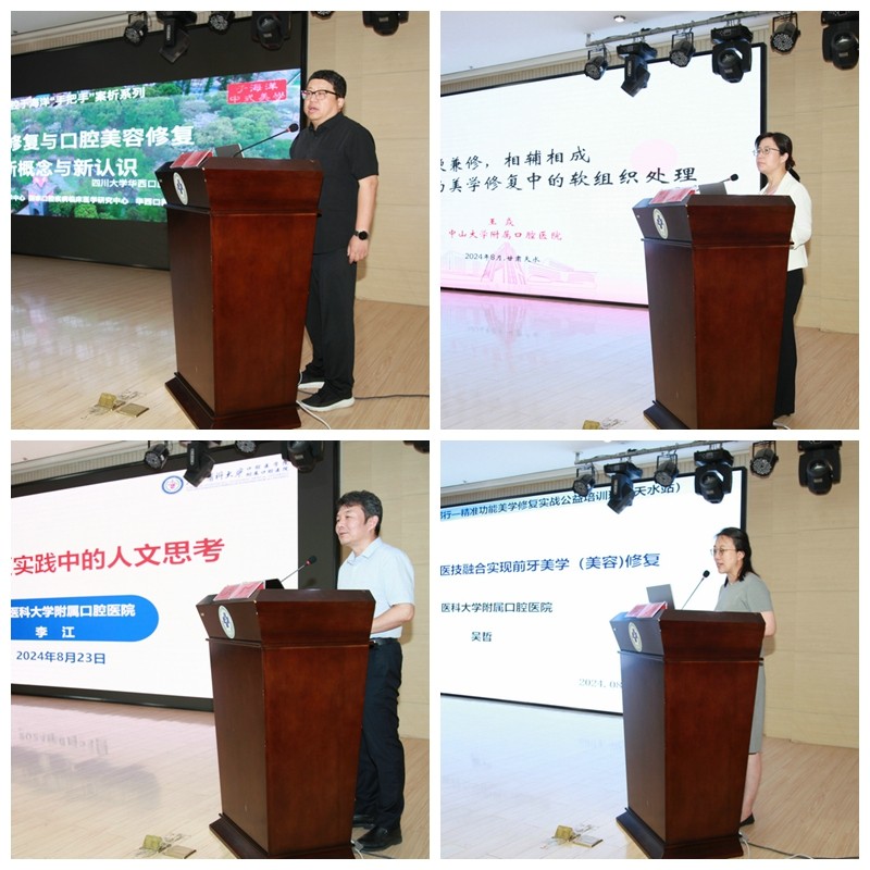 8月22日至23日,由中華口腔醫(yī)學會修復學專業(yè)委員會和甘肅省口腔醫(yī)學會主辦,蘭州大學口腔醫(yī)院和天水市中西醫(yī)結(jié)合醫(yī)院(市二院)承辦的中華口腔醫(yī)學會西部行——精準功能美學修復實戰(zhàn)公益繼續(xù)教育培訓班(天水站)、甘肅省口腔醫(yī)學會口腔修復學專業(yè)委員會第2次口腔修復學學術(shù)會議暨數(shù)字化種植修復技術(shù)的臨床應用繼續(xù)教育省級培訓班在市二院多功能廳成功舉辦。中華口腔醫(yī)學會口腔修復學專業(yè)委員會主任委員于海洋教授及其帶領的專家團隊;中山大學附屬口腔醫(yī)院王焱、滕偉等教授;廣州醫(yī)科大學附屬口腔醫(yī)院李江、吳哲教授和蘭州大學口腔醫(yī)學院劉斌、張凱亮教授等全國知名專家應邀蒞臨現(xiàn)場并授課。特邀市政府黨組成員、副市長汪小娟,市衛(wèi)生健康委黨組書記、主任王定新和市二院黨委書記曹寶國蒞臨現(xiàn)場并作致辭講話。開班式由市二院院長唐志鋒主持。市二院班子成員,省內(nèi)各級醫(yī)療機構(gòu)口腔科及口腔診所醫(yī)務人員代表約160余人參加。