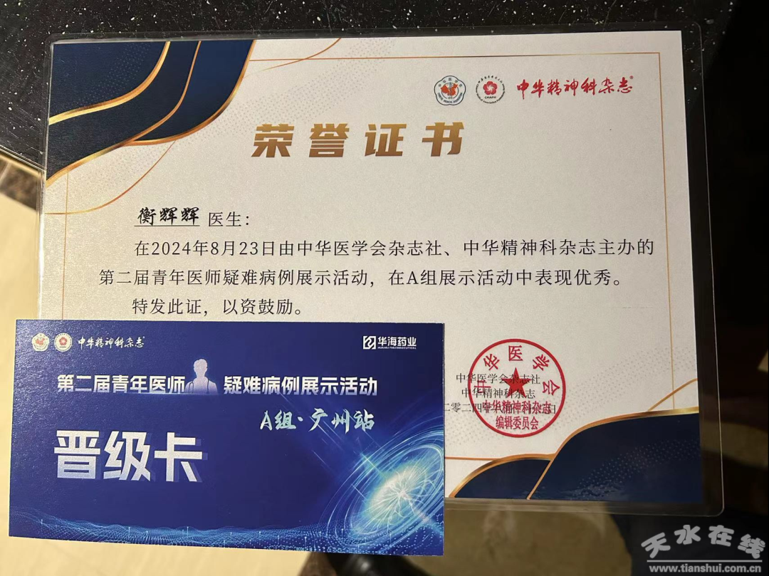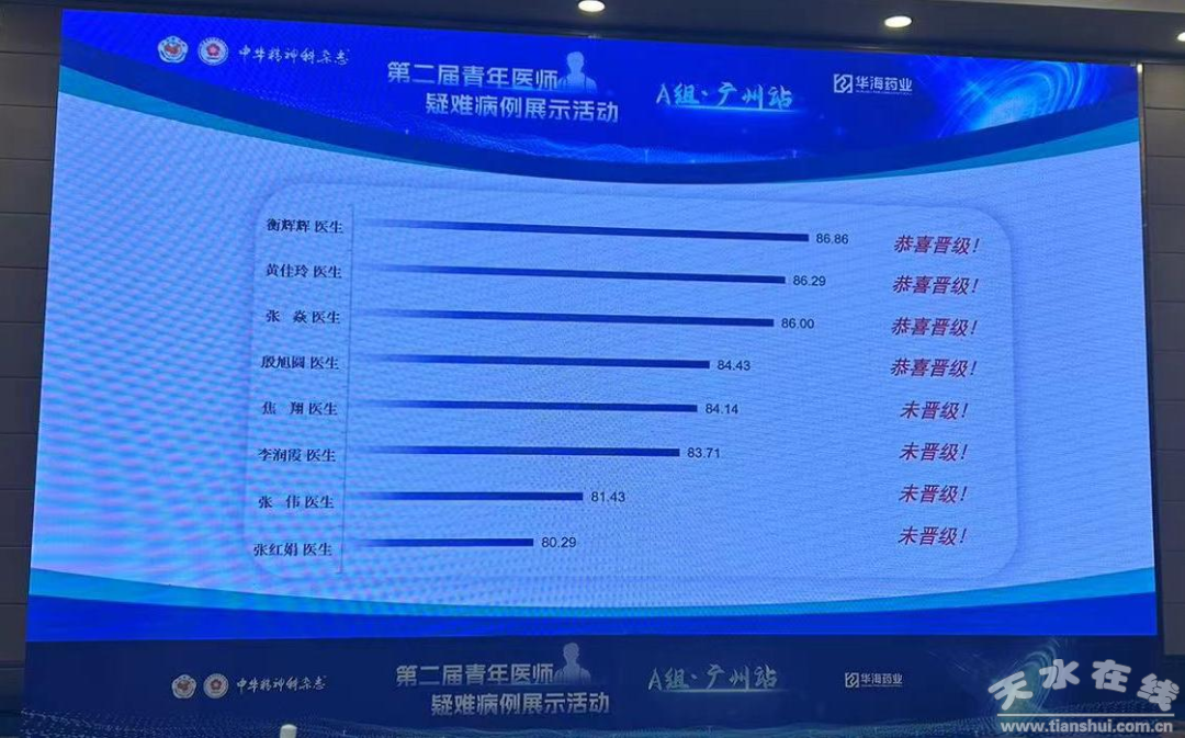 近日,由中華醫(yī)學(xué)會雜志社、中華精神科雜志主辦的第二屆“精華杯”青年醫(yī)師疑難病例A組區(qū)域展示活動在廣州舉辦。天水市第三人民醫(yī)院青年醫(yī)師衡輝輝代表醫(yī)院參賽。經(jīng)過激烈角逐,衡輝輝以廣東賽區(qū)第一名的成績進(jìn)入全國總決賽!
