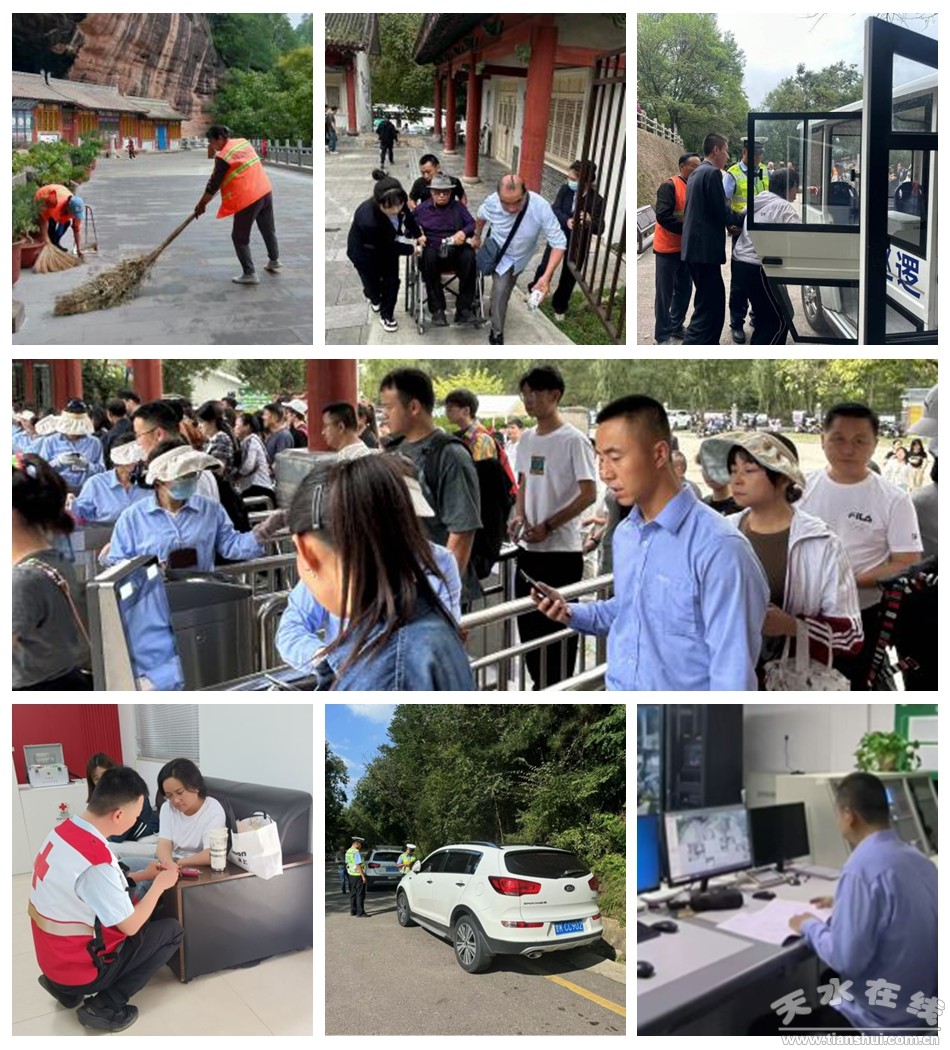 麥積山大景區(qū)管委會精心準(zhǔn)備、周密部署,與相關(guān)部門密切協(xié)作,扎實(shí)做好安全生產(chǎn)、假日值守、文明旅游等工作。景區(qū)管委會領(lǐng)導(dǎo)深入景區(qū)一線靠前調(diào)度,全體干部職工堅(jiān)守崗位,做好假日旅游接待工作;公安、交警、森林消防、醫(yī)療、運(yùn)管、市場監(jiān)管等部門密切配合,管秩序,守安全,全力保障游客的平安出行;市政府分管領(lǐng)導(dǎo)赴景區(qū)現(xiàn)場督查指導(dǎo),高位推動(dòng)麥積山大景區(qū)假日旅游高峰接待工作,營造良好的旅游環(huán)境。