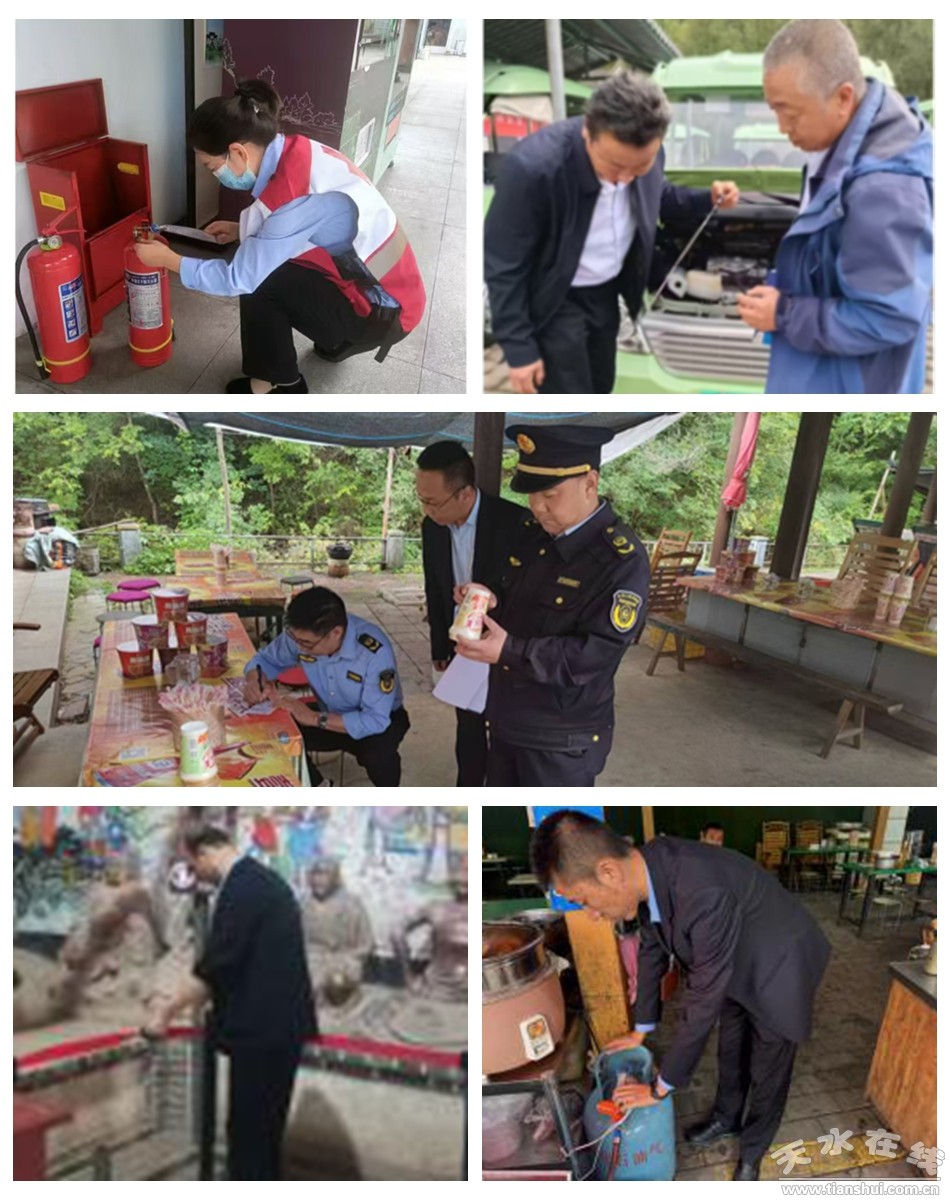 為確保中秋假日期間景區(qū)游覽秩序安全有序,節(jié)前麥積山大景區(qū)管委會全面開展安全隱患排查工作,對景區(qū)游步道、仙人湖、消防設(shè)施、觀光車等進(jìn)行常態(tài)化安全隱患排查,各部門盯緊守穩(wěn)各關(guān)鍵環(huán)節(jié)和重點(diǎn)部位安全責(zé)任,發(fā)現(xiàn)問題立即整改,確保景區(qū)無聚集、無擁堵、無扎堆、無輿情,最大限度滿足游客出行需求。假日期間,景區(qū)及時(shí)發(fā)布?xì)庀蟆⒔煌ㄐ畔,加?qiáng)宣傳,引導(dǎo)游客理性出游、安全出游。景區(qū)綜合執(zhí)法隊(duì)伍聯(lián)合景區(qū)派出所,開展旅游秩序綜合整治行動(dòng),嚴(yán)厲打擊“黑車”、“黑導(dǎo)”、非法攬客等行為,加強(qiáng)市場監(jiān)管,規(guī)范旅游秩序,維護(hù)游客和經(jīng)營者合法權(quán)益。