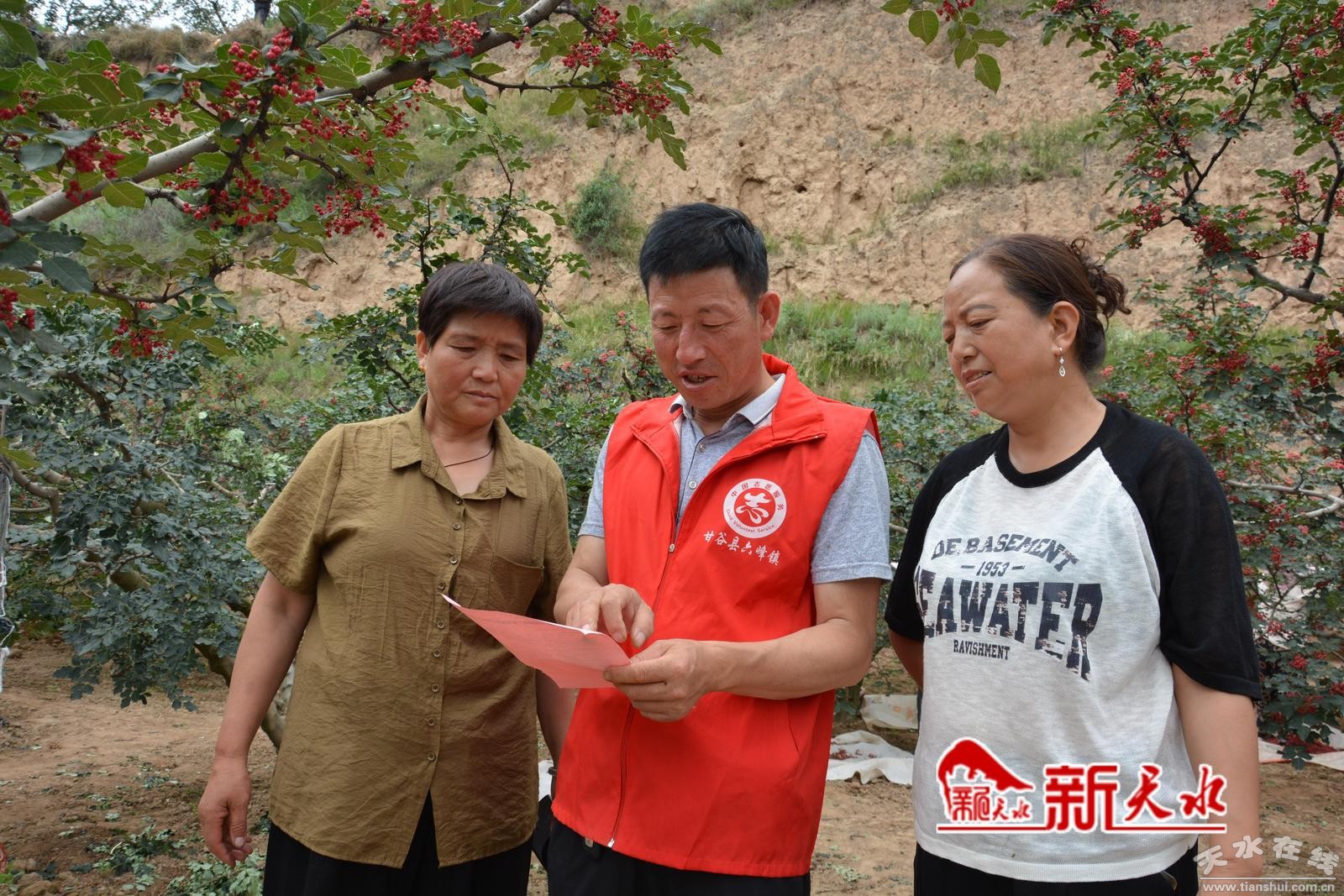 “大家伙要改變不合時宜的風(fēng)俗習(xí)慣!薄拔覀円珜(dǎo)新人樹立文明向上的婚戀觀,不盲目攀比,不索要高額彩禮!薄吧白尷先擞兴B(yǎng)、有所樂,去世后喪事要簡辦!薄B日來,金坪村黨支部書記兼村委會主任王虎軍一邊抓農(nóng)業(yè)生產(chǎn)工作,一邊穿著紅馬甲與村上志愿者們走進(jìn)花椒基地,開展“破除陳規(guī)陋習(xí)樹立文明新風(fēng)”進(jìn)田間地頭宣講活動,讓黨的創(chuàng)新理論“飛入尋常百姓家”。
