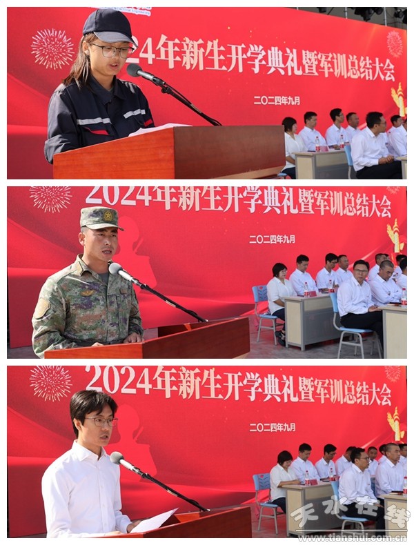 隨后,軍訓(xùn)優(yōu)秀學(xué)員及新生代表、教官代表、優(yōu)秀教師代表分別發(fā)言,分享了軍訓(xùn)期間的點滴感悟、對未來的憧憬與規(guī)劃,以及對學(xué)生成長成才的深切期望與祝愿。
