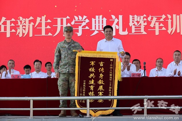 黨委書記趙彥軍代表學(xué)校向承訓(xùn)部隊贈送了錦旗,向鼎力支持軍訓(xùn)工作的帶訓(xùn)軍官表示崇高的敬意和衷心的感謝。
