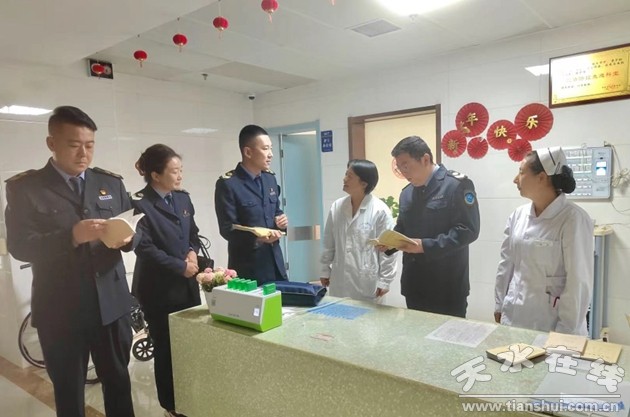 在新中國(guó)成立75周年之際,為了進(jìn)一步規(guī)范我市民營(yíng)醫(yī)院醫(yī)療服務(wù)市場(chǎng)秩序,加強(qiáng)醫(yī)療質(zhì)量安全管理,加強(qiáng)行業(yè)自律,營(yíng)造公平有序、守法經(jīng)營(yíng)的醫(yī)療環(huán)境,確保人民群眾度過(guò)一個(gè)歡樂(lè)祥和的節(jié)日,從9月6日開(kāi)始,天水市疾病預(yù)防控制中心(市衛(wèi)生監(jiān)督所)醫(yī)療機(jī)構(gòu)監(jiān)督管理科組織開(kāi)展了以“強(qiáng)化制度落實(shí),確保醫(yī)療安全”為主題的專(zhuān)項(xiàng)監(jiān)督檢查。