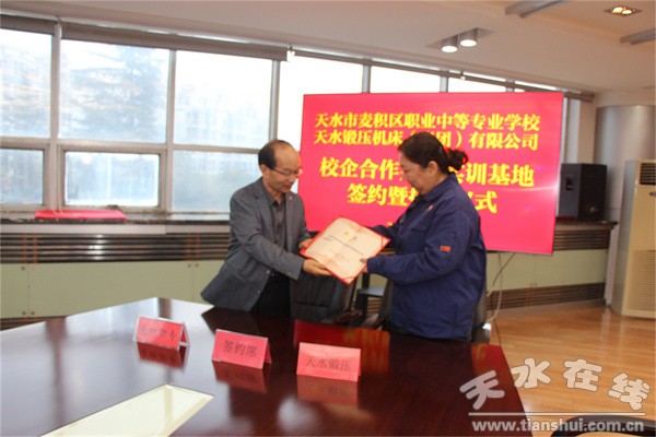10月11日上午,天水鍛壓機(jī)床(集團(tuán))有限公司與天水市麥積區(qū)職業(yè)中等專業(yè)學(xué)校就校企合作、技能人才培養(yǎng)等事宜進(jìn)行了座談交流并舉行校企合作共建實訓(xùn)基地簽約暨授牌儀式。