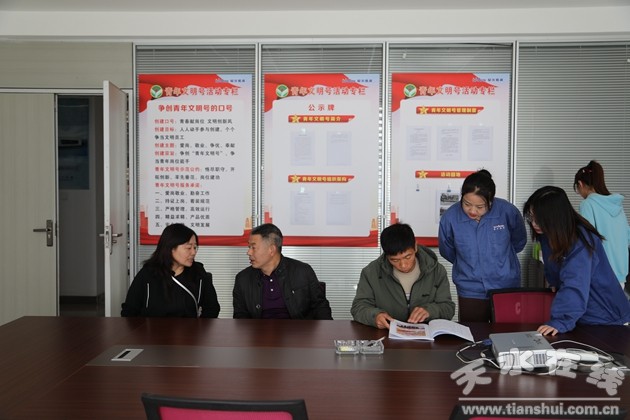 為持續(xù)深化青年文明號創(chuàng)建工作,10月11日,共青團(tuán)天水市委員會青年發(fā)展與權(quán)益維護(hù)部部長武鑫、副部長耿鐵軍一行3人到甘肅星火智能數(shù)控機(jī)床有限公司開展市級青年文明號集體考核工作,公司黨群工作部、銷售部相關(guān)工作人員陪同考核。