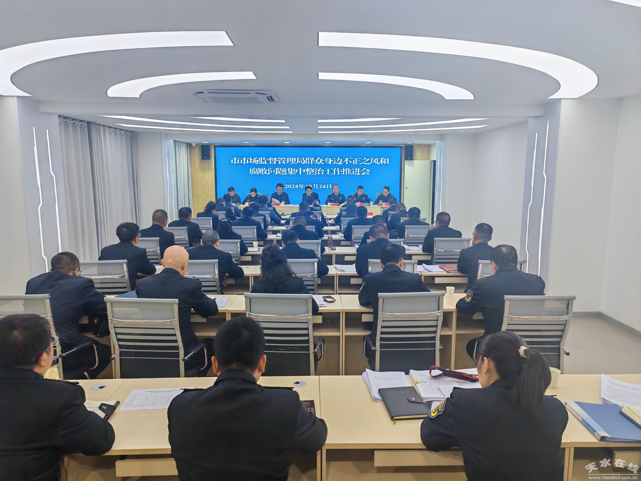 10月24日,天水市市場(chǎng)監(jiān)管局召開(kāi)市場(chǎng)監(jiān)管領(lǐng)域群眾身邊不正之風(fēng)和腐敗問(wèn)題集中整治工作推進(jìn)會(huì)議,市市場(chǎng)監(jiān)管局黨組書(shū)記、局長(zhǎng)董小明主持會(huì)議并講話。會(huì)議傳達(dá)學(xué)習(xí)了全國(guó)和省、市集中整治工作推進(jìn)會(huì)議精神,以及全省市場(chǎng)監(jiān)管系統(tǒng)群眾身邊不正之風(fēng)和腐敗問(wèn)題集中整治暨行風(fēng)建設(shè)推進(jìn)會(huì)議精神,通報(bào)了全市市場(chǎng)監(jiān)管系統(tǒng)集中整治工作開(kāi)展情況,聽(tīng)取了9個(gè)牽頭科室和各執(zhí)法組工作匯報(bào),安排部署了近期集中整治工作重點(diǎn)任務(wù)和要求。