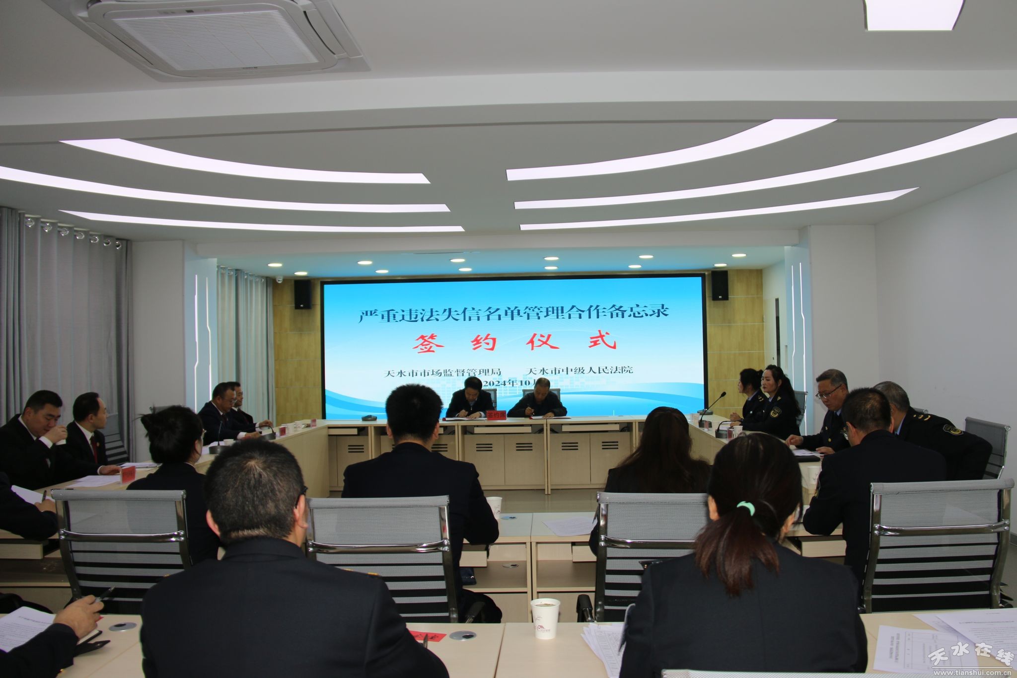 10月31日,天水市市場監(jiān)督管理局、天水市中級人民法院舉行《關(guān)于加強(qiáng)嚴(yán)重違法失信名單管理的合作備忘錄》簽約儀式。天水市市場監(jiān)督管理局黨組書記、局長董小明,天水市中級人民法院黨組成員、副院長邢自元出席并簽約。市市場監(jiān)督管理局、市中級人民法院,以及秦州區(qū)、麥積區(qū)市場監(jiān)管局和法院相關(guān)負(fù)責(zé)人參加簽約儀式。
