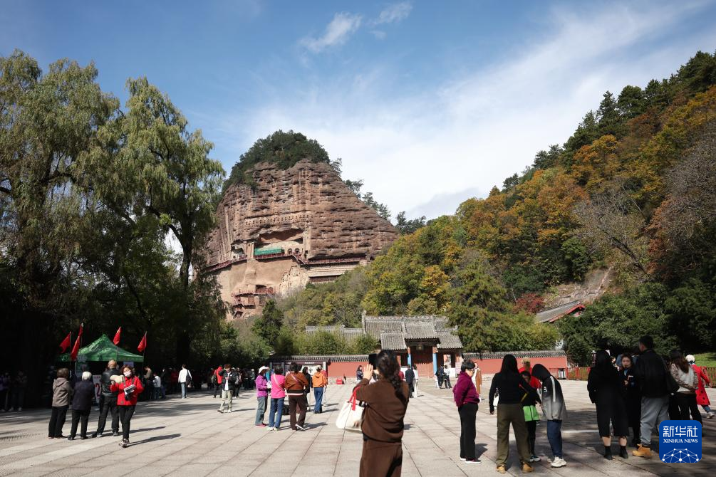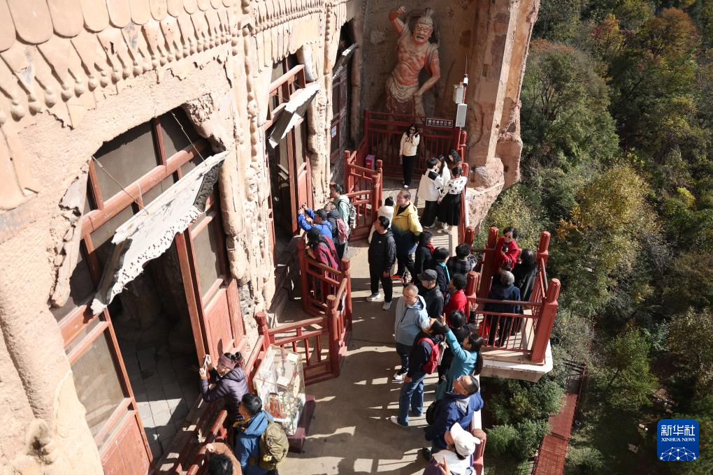 游客在麥積山石窟參觀(11月2日攝)。 |