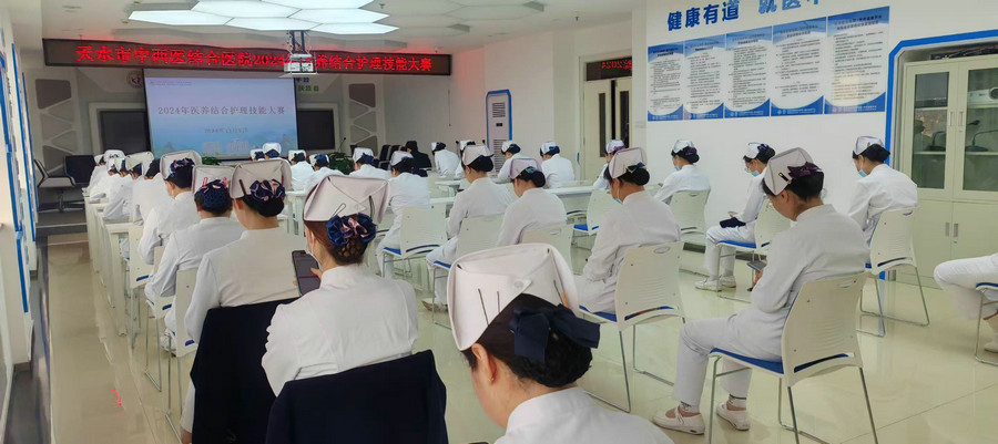 為深入推進(jìn)醫(yī)養(yǎng)結(jié)合發(fā)展,進(jìn)一步提升醫(yī)院護(hù)理服務(wù)質(zhì)量,為患者提供更加優(yōu)質(zhì)、高效的醫(yī)養(yǎng)結(jié)合服務(wù),11月6日,天水市中西醫(yī)結(jié)合醫(yī)院(市二院)護(hù)理部緊緊圍繞“內(nèi)強(qiáng)素質(zhì)、外樹形象”百日攻堅行動和“十個多一點”暖心服務(wù)行動要求,在院內(nèi)舉辦了醫(yī)養(yǎng)結(jié)合技能競賽活動,院領(lǐng)導(dǎo)蒞臨現(xiàn)場指導(dǎo)。經(jīng)過前期全院選拔,最終有32名選手參加了競賽。