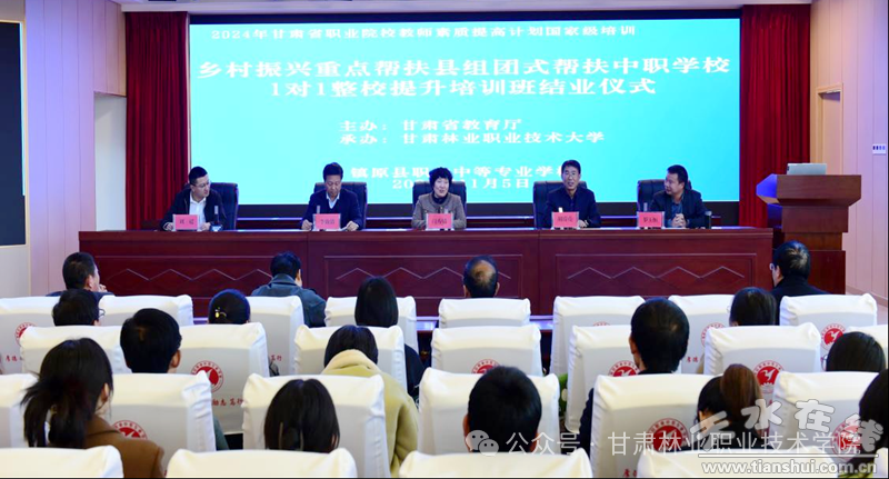 11月5日,由甘肅省教育廳主辦,甘肅林業(yè)職業(yè)技術(shù)大學(xué)承辦的2024年甘肅省職業(yè)院校教師素質(zhì)提高計(jì)劃國(guó)家級(jí)培訓(xùn)——鄉(xiāng)村振興重點(diǎn)幫扶縣組團(tuán)式幫扶中職學(xué)校1對(duì)1整校提升培訓(xùn)班在鎮(zhèn)原縣職業(yè)中等專(zhuān)業(yè)學(xué)校舉行結(jié)業(yè)儀式。我校黨委委員、副院長(zhǎng)閆秀婧,鎮(zhèn)原縣職業(yè)中等專(zhuān)業(yè)學(xué)校校長(zhǎng)胡春亮、常務(wù)副校長(zhǎng)李效清出席會(huì)議,組團(tuán)式幫扶培訓(xùn)組成員、全體參訓(xùn)教師參加。