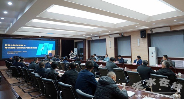 為貫徹落實(shí)習(xí)近平總書(shū)記在全國(guó)教育大會(huì)上的重要講話精神,深入實(shí)施國(guó)家教育數(shù)字化戰(zhàn)略行動(dòng),加快推進(jìn)學(xué)校教育數(shù)字化轉(zhuǎn)型進(jìn)程,11月13日,學(xué)校特邀西安交通大學(xué)網(wǎng)絡(luò)信息中心主任鎖志海、副主任徐墨來(lái)校進(jìn)行教育數(shù)字化轉(zhuǎn)型專題輔導(dǎo)。天水師范學(xué)院黨委書(shū)記劉振奎、校長(zhǎng)汪聚應(yīng),黨委常委、宣傳部部長(zhǎng)、統(tǒng)戰(zhàn)部部長(zhǎng)武勝文出席,學(xué)校網(wǎng)絡(luò)安全和信息化建設(shè)領(lǐng)導(dǎo)小組成員、各職能部門(mén)負(fù)責(zé)人及各學(xué)院院長(zhǎng)參加,黨委常委、副校長(zhǎng)張登紅主持報(bào)告會(huì)。