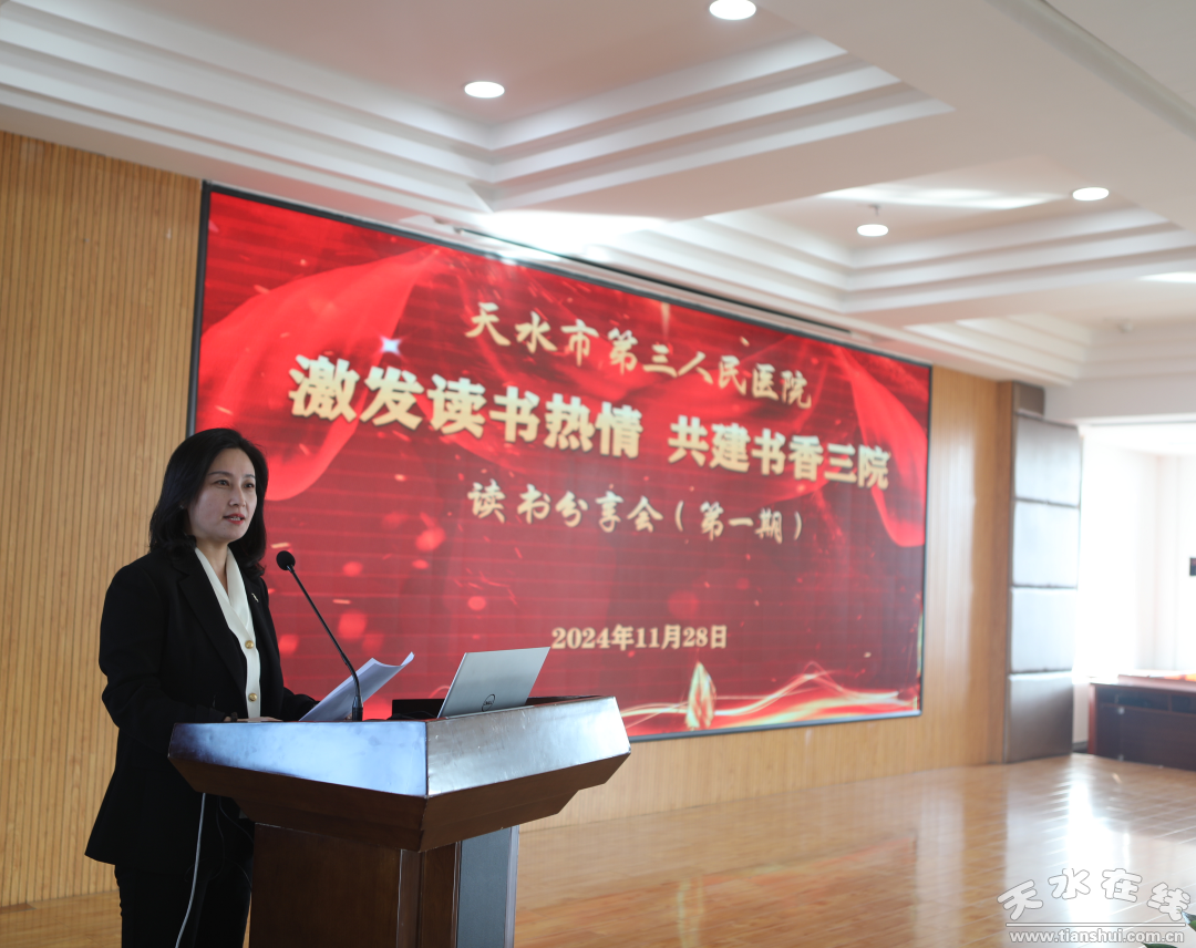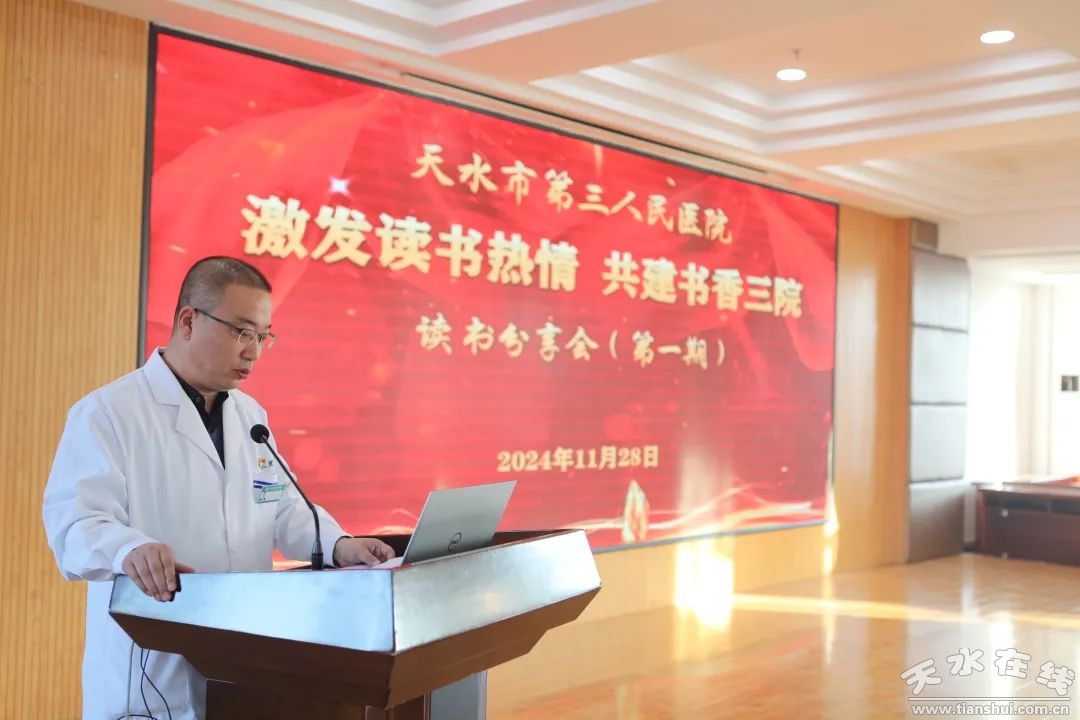 為深入學(xué)習(xí)貫徹黨的二十屆三中全會(huì)精神和習(xí)近平總書記關(guān)于加強(qiáng)讀書學(xué)習(xí)的重要論述,形成全院職工愛讀書、讀好書、善讀書的濃厚氛圍,11月28日下午,天水市第三人民醫(yī)院組織開展了“激發(fā)讀書熱情、共建書香三院”讀書分享會(huì)活動(dòng),黨委副書記、院長(zhǎng)李剛出席活動(dòng)并講話,其他在家院領(lǐng)導(dǎo)、讀書分享人、部分職工代表共計(jì)100余人參與本次活動(dòng)。